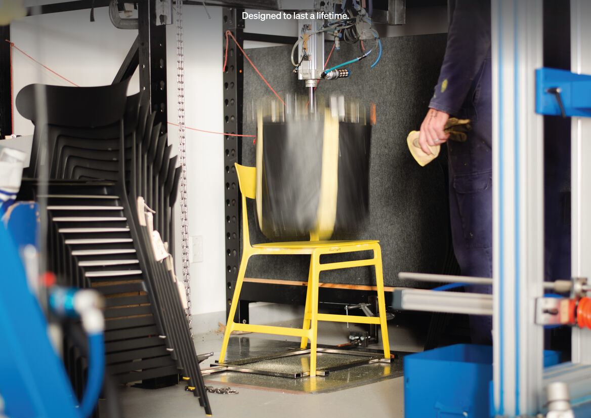 Lightly is designed to have the lightest environmental impact and the strength to last a lifetime. This is achieved by using plant-based and recycled materials, using these materials only where they are needed, and designing the chair to exceed the world’s highest commercial safety and durability standards.