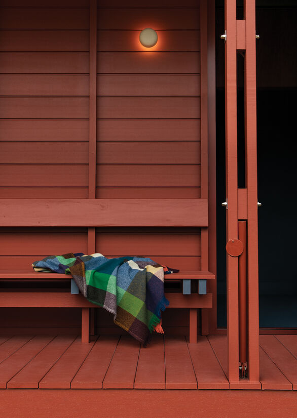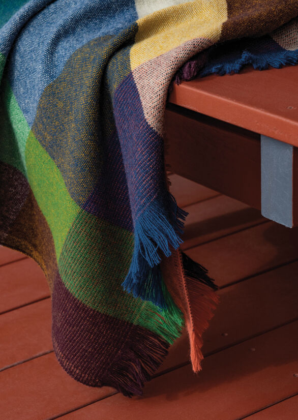 The Cabin blanket is a study of colour and its infinite combinations. The design is an exploration of the balance and imbalance created through the merging of colour. Harmonious unions exist next to contrary combinations, ultimately becoming a united whole.
