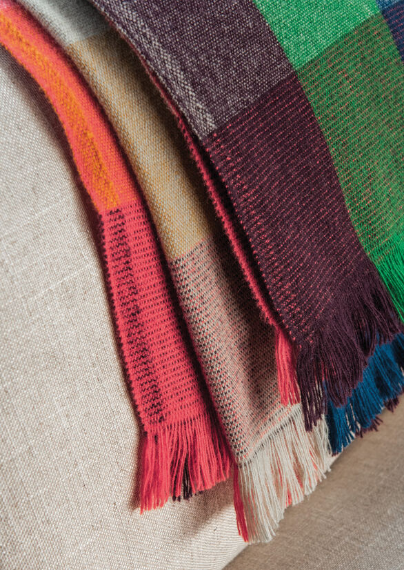 During the design process, further reflections were around the New Zealand tradition of tramping. This included the idea of staying in cabins and huts where you might find blankets folded on a shelf; the colours a little faded but still interesting, and the wool a little threadbare. The Cabin blanket is a cheerful reimagining of these classic New Zealand heirlooms. An item we hope wears well over time and becomes a beloved textile within the home.