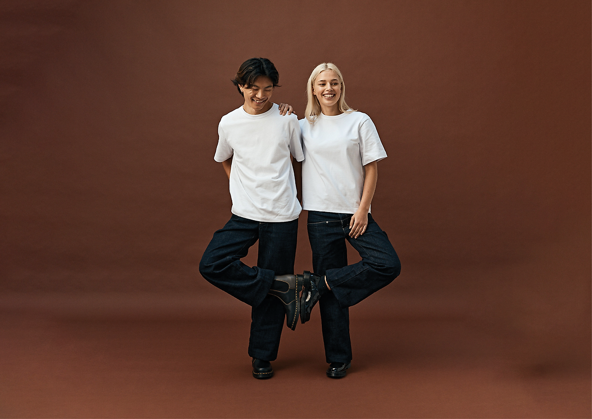 We know a good fitting t-shirt is something to swear by, so we designed it to fit just right. Though this is one of the most important features, it's simple — we made it wider and shorter. Not too boxy and not too long. No need to chop it or tuck it. Just right.