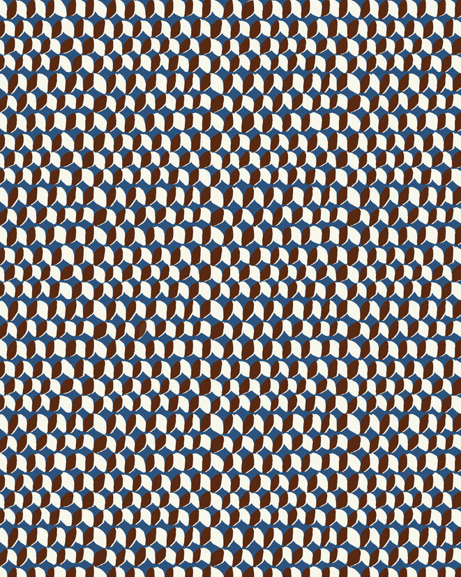 This print originates from Phoebe’s first ever textile collection during her initial year of study. A body of illustrative exploration and textile sampling was created in response to Havana Cafe, a chosen site in Wellington, which informed a four piece print and dye collection. The Infinity Print finds inspiration in the striking afternoon sunlight in the Havana space, deriving marks and shapes from the distressed cafe floor. The repetitive hand painted marks made with a pointed calligraphy brush offered the designer moments of peace and contemplation of the space as it quietened to a close.
