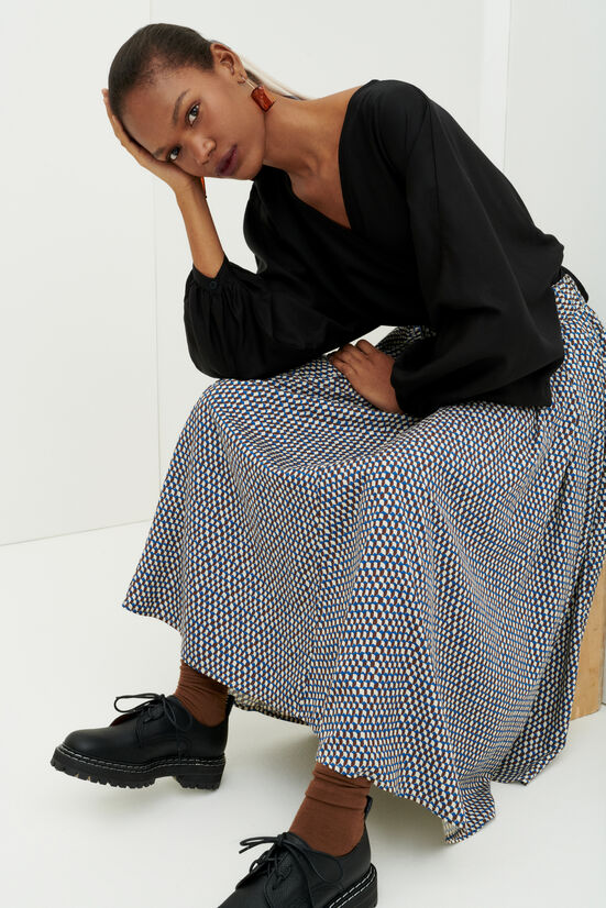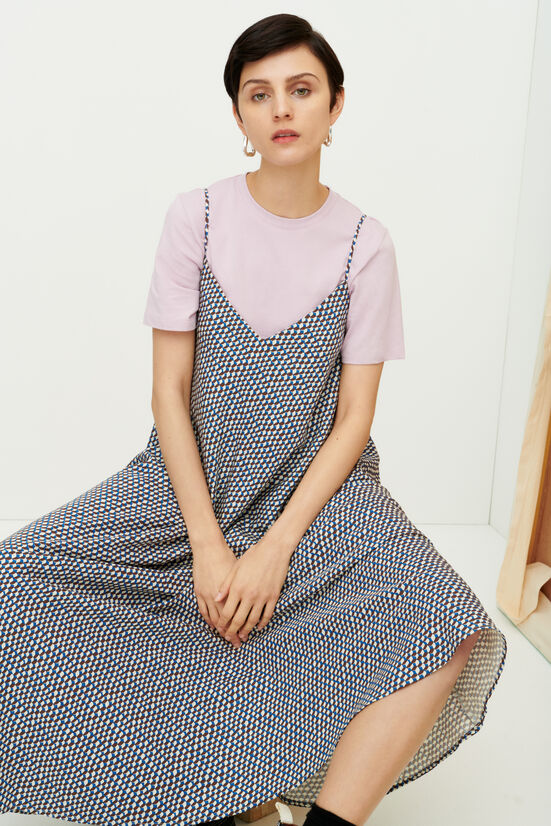 Reimagined in Kowtow’s seasonal colours, the Infinity Print is screen printed with Global Organic Textile Standard (GOTS) certified inks on 100% Lenzing® Tencel, a natural and biodegradable fibre made using wood pulp from Forest Stewardship Council (FSC) certified forests. The production and manufacture of Kowtow’s garments are certified, ethical and within a transparent supply chain.