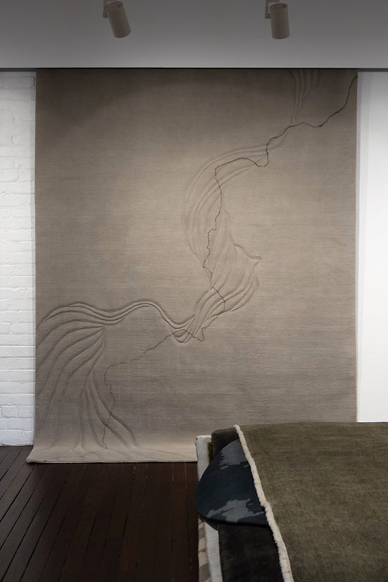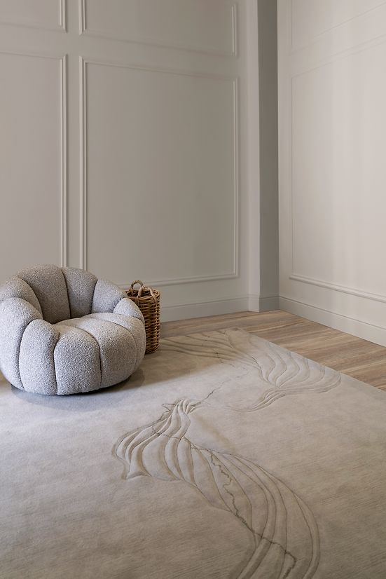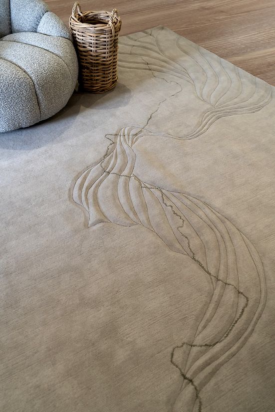 Utilising New Zealanders instinctive desire to bring nature into the home, the Wisp rug draws aspects of smoke and coiling tree branches to create a dynamic visual pathway through interior spaces. As light hits the textural grooves and the silver vein of silk, a trail is formed, inviting you to step through the space.