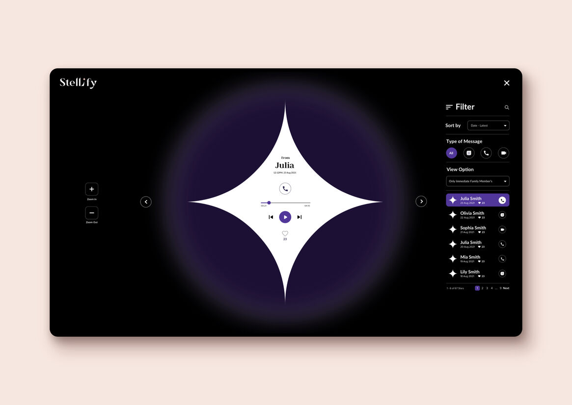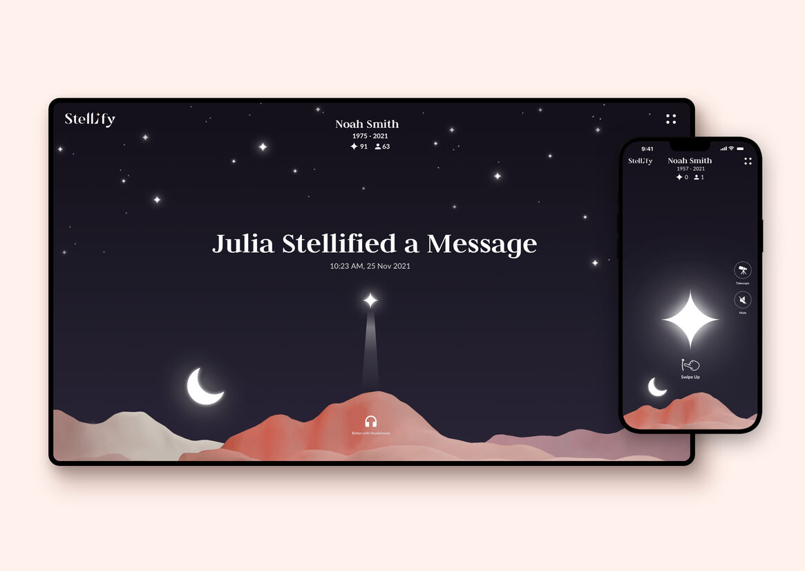 Stellify is an interactive memorial website helping people who go through a sudden loss of a loved one to send the unsaid with the ones that grieve together.