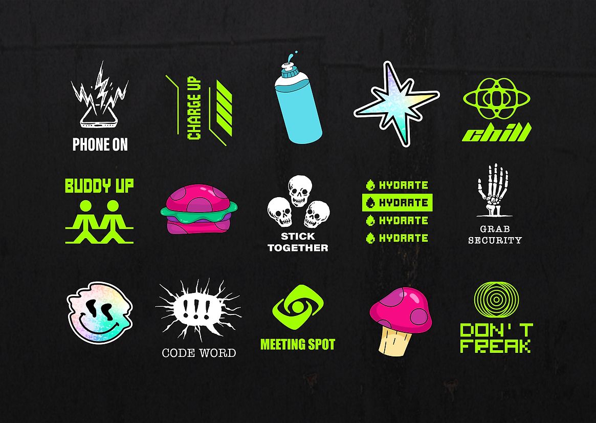 To bring these to life, we drew inspiration from an eclectic mix of music sub-genres - referencing these artwork styles to create our own. It goes from free-loving bohemian illustrations to drum and bass-inspired 3D melting faces, right through to heavy-metal skulls. Each one contributes a different feeling to the overall set, covering the vast types of gigs that our audience attends throughout the summer.
