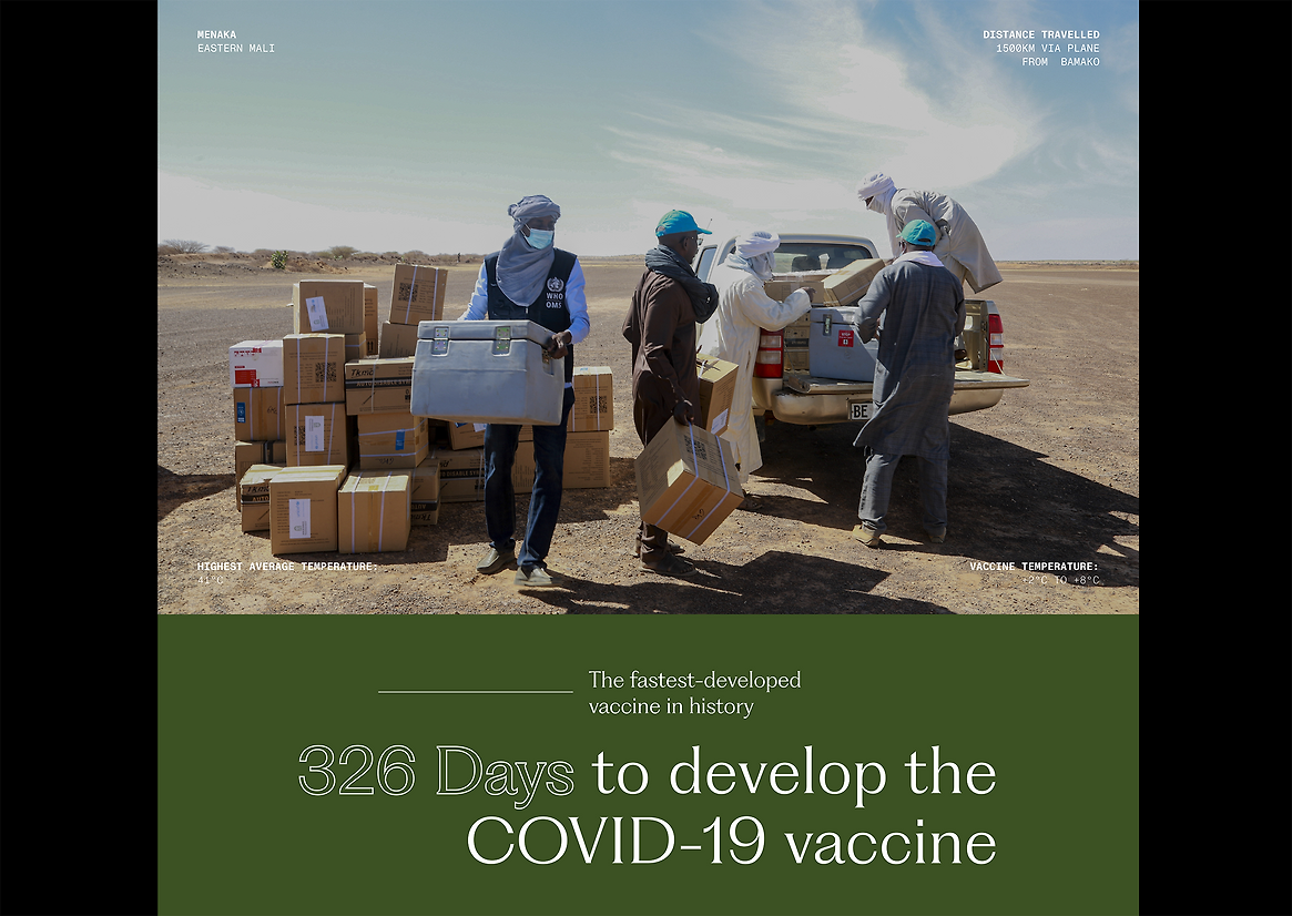 Many creative disciplines were woven together to build this website, including detailed 3D animation, technical illustration, data visualisation, film, and photography from a network of photojournalists. All working together to capture the gravity of the global COVID-19 vaccine rollout.