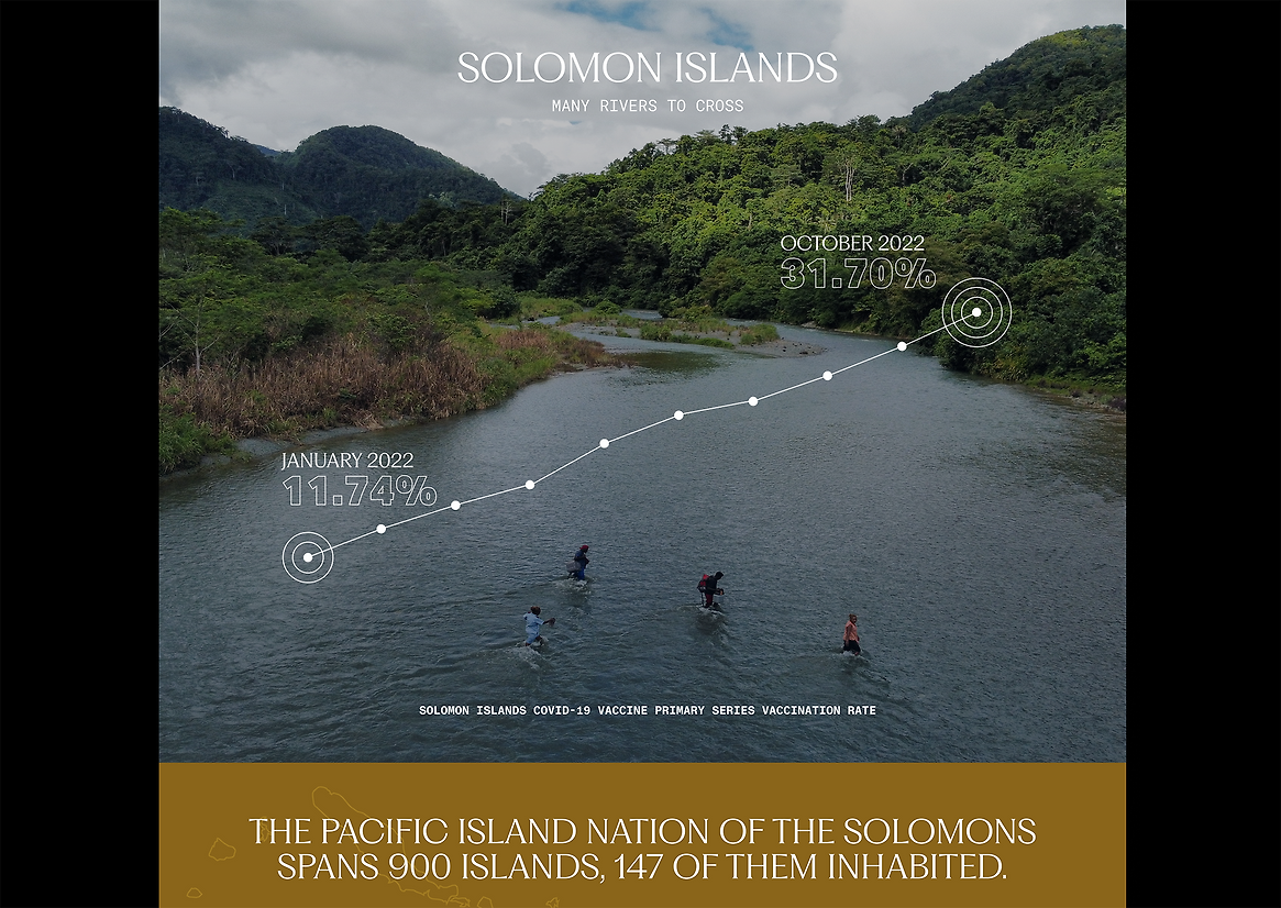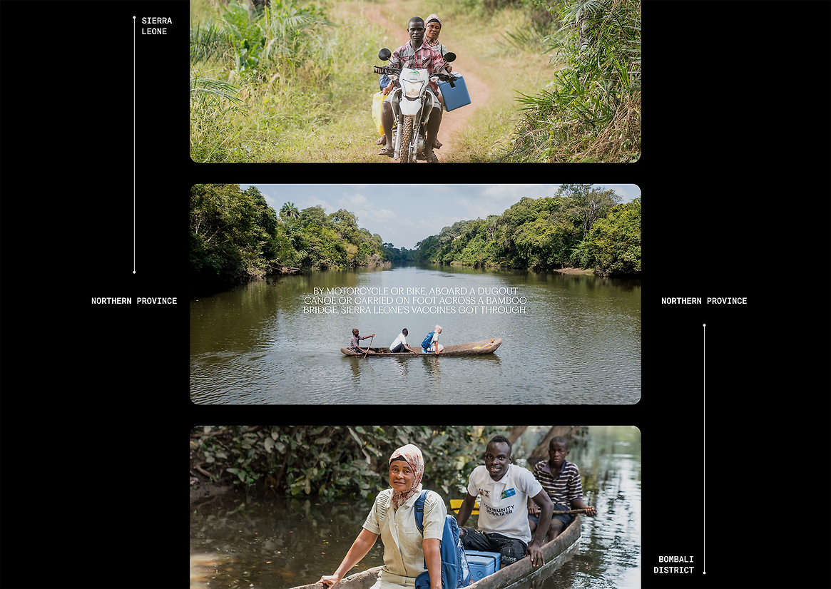 Our goal was to make this precious information more accessible at every touchpoint. To execute this, we worked alongside data analysts to elegantly distill the findings into interactive graphs and figures. Many of them integrated into the photographic documentation of the corresponding vaccine mission.