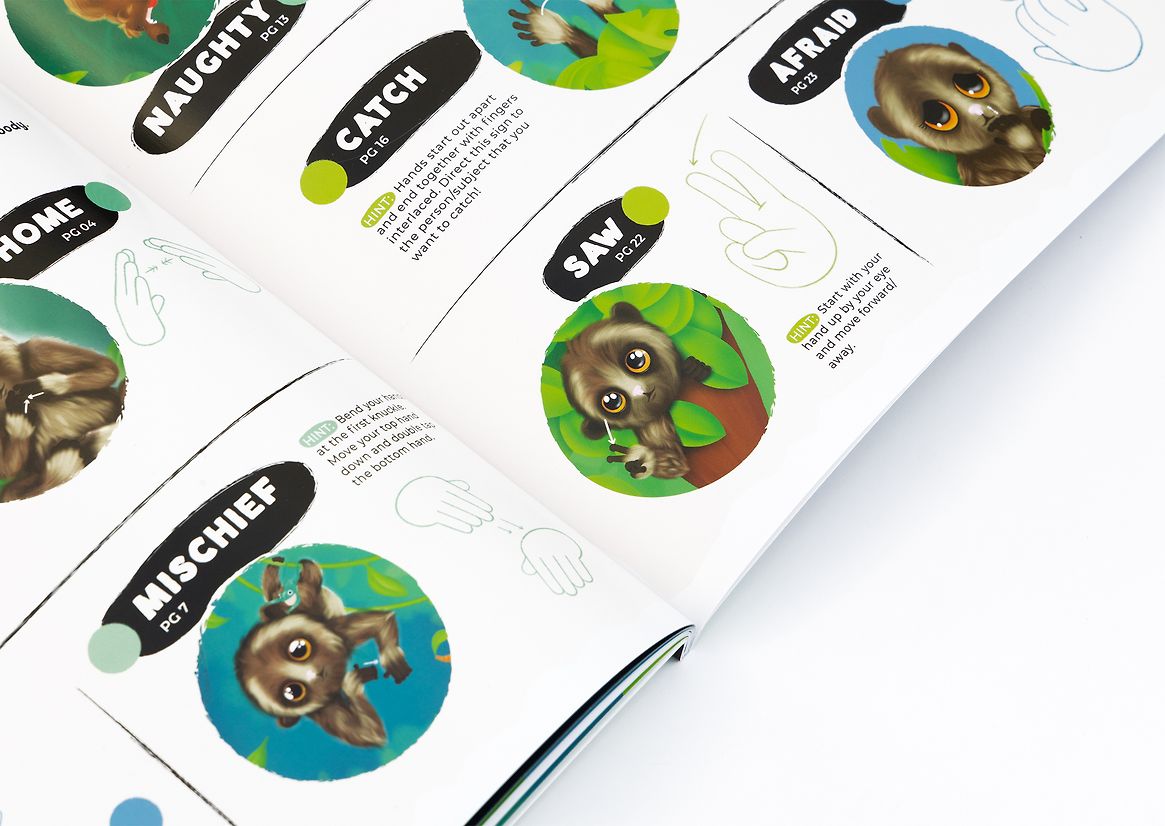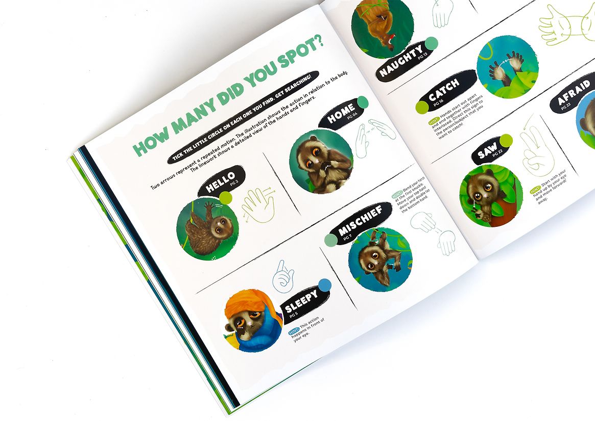I wanted to create a children's books that had all the fun of a children's books but also helped children learn sign language. It needed to appeal to verbal children as well as deaf children as the more kids that know NZSL the more communication, and relationships deaf children can have, creating a more inclusive environment for them. The story is told in written form, with the illustrated characters signing key elements of the story. This helps deaf children to understand the story and presents an illustrated visual of the signed concept, helping to teach them the word being signed and its meaning. The signed word is included in the story and underlined, helping children identify, seek out and learn the sign. The back of the book includes a resource page with a detailed breakdown of the signs used and where it was used in the book, making it a practical resource to help parents teach and learn the signs included. With bright colour full illustrations and a fun story it will appeal to all children, making NZSL fun and engaging to learn.