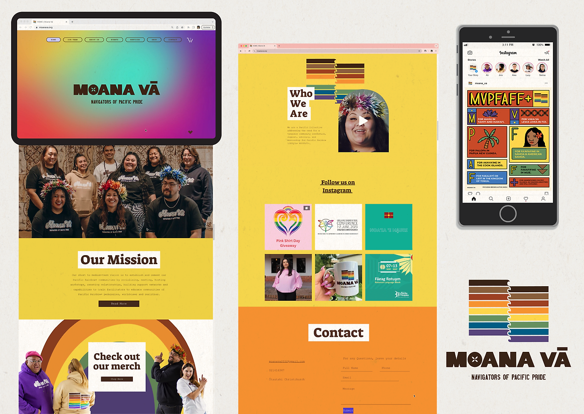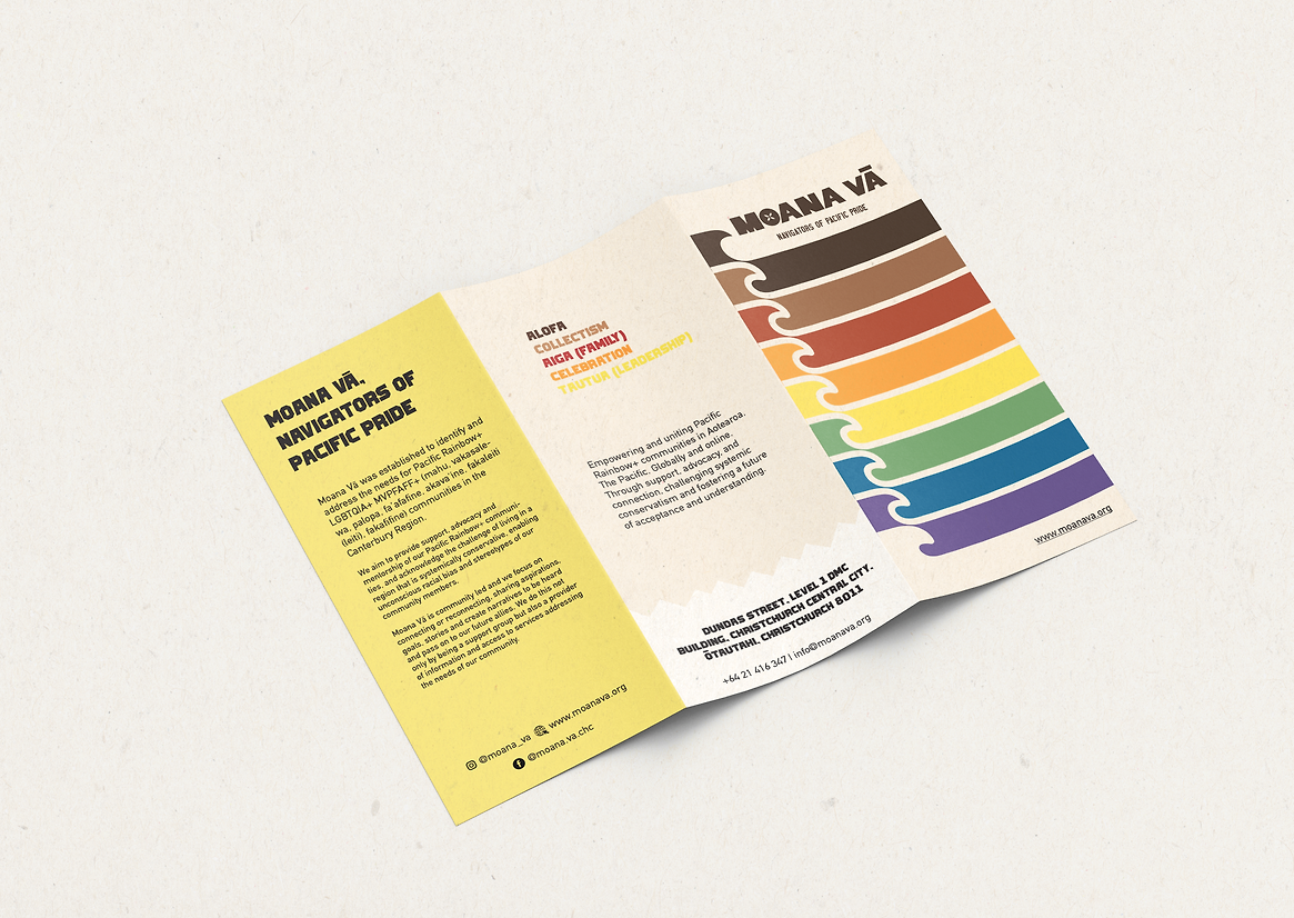 The logo and branding was born from this shared kaupapa — to create a visual identity that held meaning, mana, and pride. It needed to reflect Pacific cultures, honour rainbow identities, and create a strong symbol of belonging.