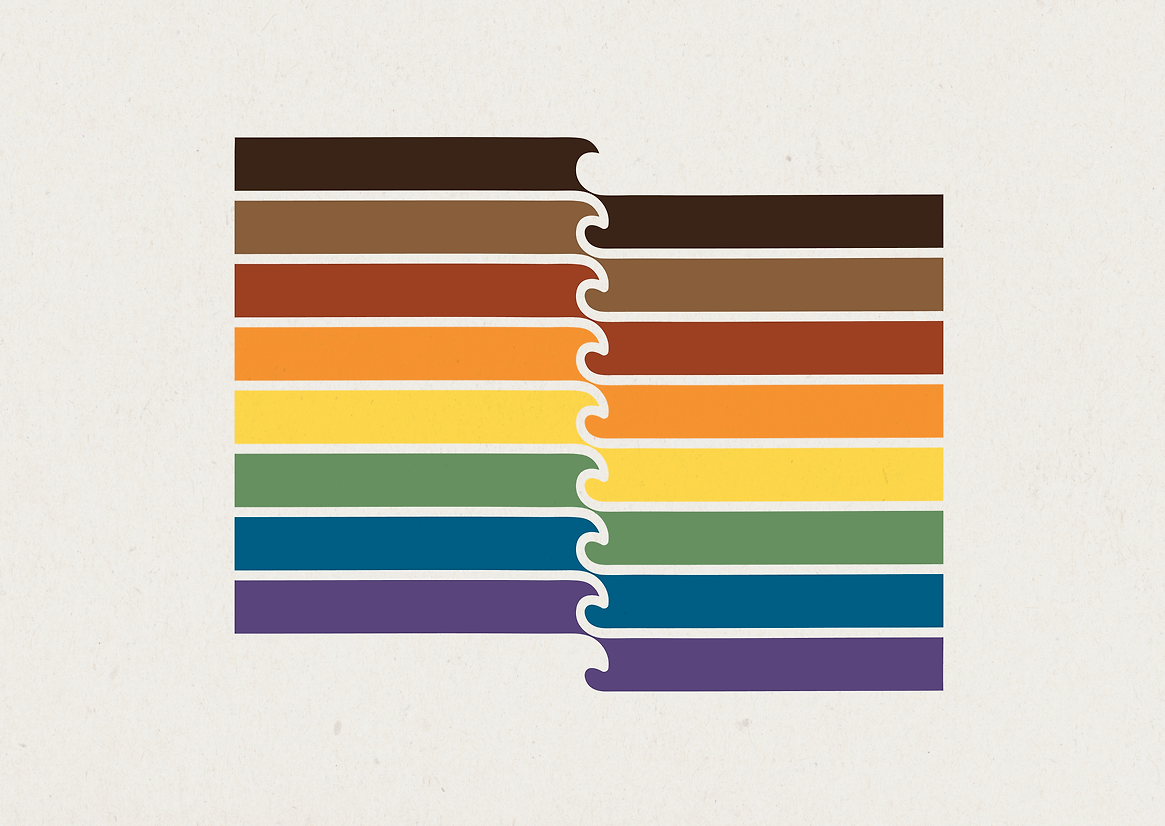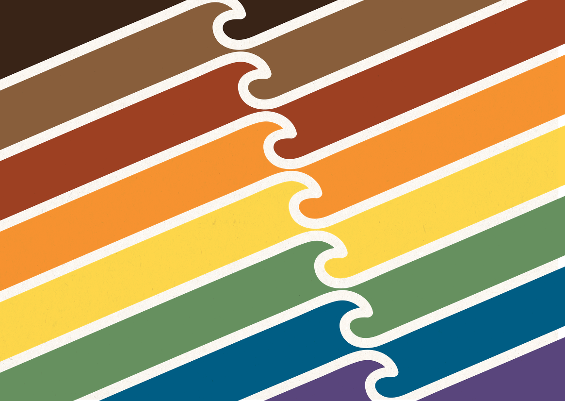 The final design beautifully balances cultural motifs with contemporary pride symbolism. The stacked bands of colour represent the spectrum of our communities — reinterpreting the Pride rainbow through Pacific tones and woven together like a mat, representing strength and unity. The central mirrored waves form a stylised vā, a flowing space between, suggesting relationship, care, and the movement of the ocean.