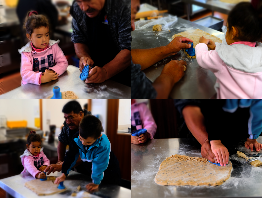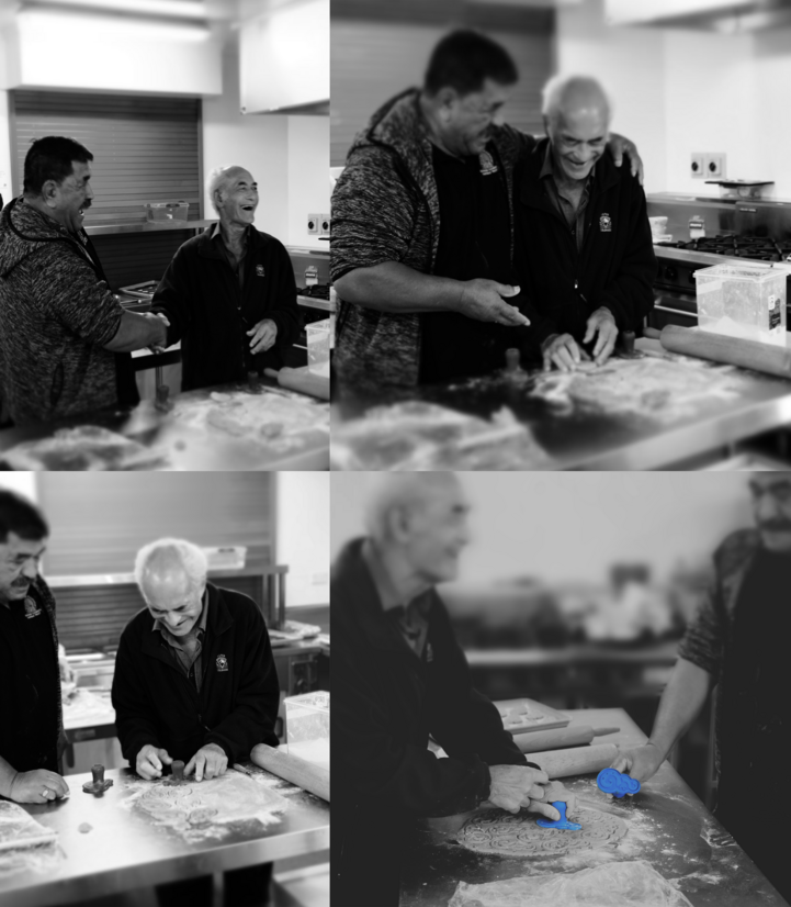 Kaumātua can express their heritage, using pūrākau (traditional story telling) to pass on ancient legends to their rangatahi (youth), inspired by the modern Māori patterns carved into the dough within traditional shapes of taonga. The 6 kuki reka kani reflect traditional Māori designs that were guided and chosen by Kaumātua to be appropriate to be used in the context of food. The Koru, Pāua, Kete, Hei-Matau and Pikorua (both single and double twist) acknowledge traditional Māori food, cooking, hunting or gathering methods. These enhance the connection to whakapapa through modern baking methods, creating a more culturally inclusive environment for Kaumātua with dementia.