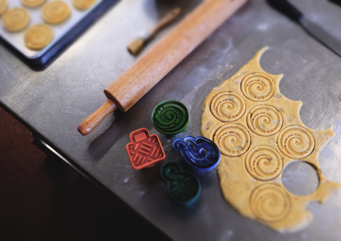 The cutters are designed to cut through the dough and leave a pattern imprinted on the dough in one easy push. This makes them gentle on both elderly hands as well as providing a large grip for children to hold. The patterns reflect the look of the chiselled traditional whakairo rākau (wood carving), an important and respected role in Māori culture. Kaumātua can feel this connection to their whakapapa when using the cutters.