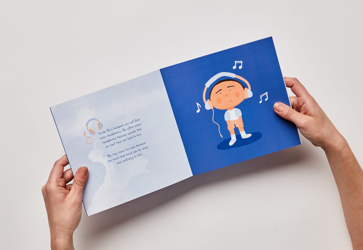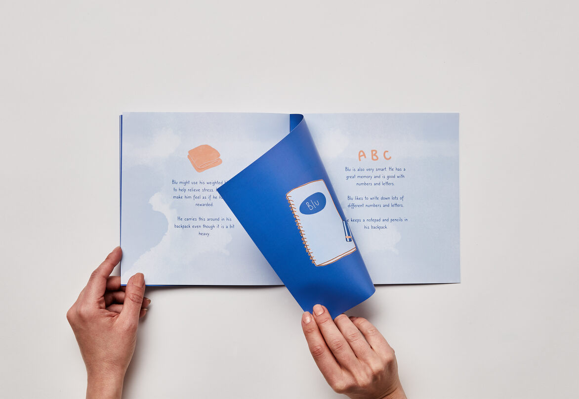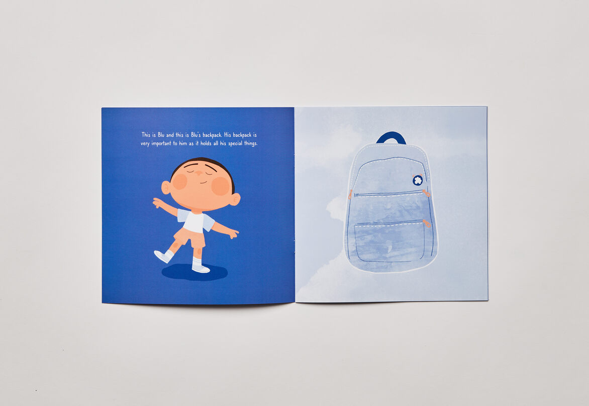 Blu’s Backpack is an illustrative and informative picture book that follows along with a character, Blu, who has Autism. The brand project intends to help support and raise awareness about Autism among primary school children. The illustrative picture book brings knowledge and educational help to children who have been recently diagnosed and are struggling to understand the disorder. Arguably, there seem to be limited educational resources or picture books specifically aimed at Autistic children and this is something I want to create to help that gap in the market.