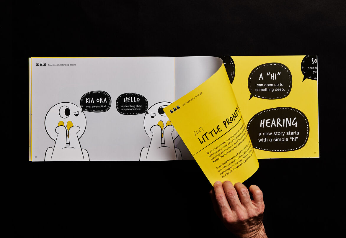 Developed from a study of interactions between strangers, Bubble Openers is a design resource that playfully reimagines commuting by public transport in Tāmaki Makaurau.