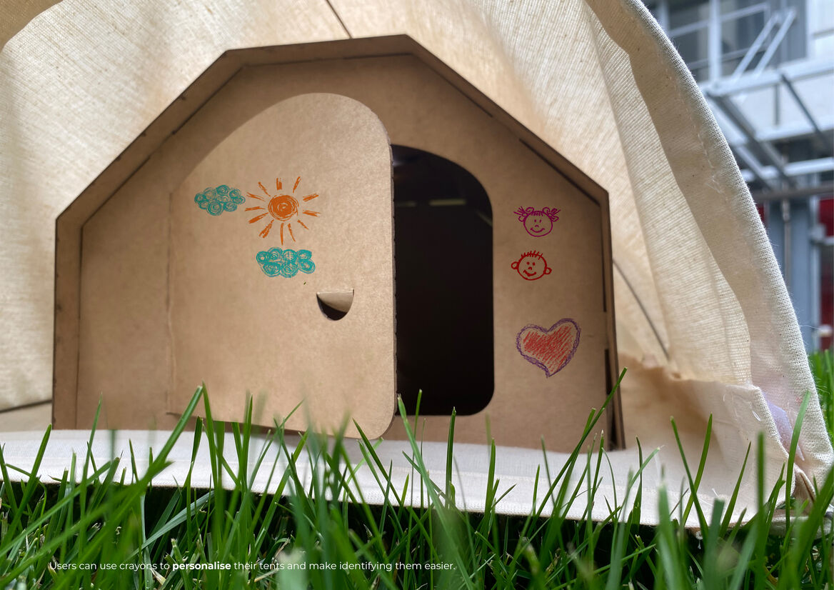 Users also benefit as they no longer have the burden of bringing their tent. They can customize their tent by choosing the colour and doodling on their cardboard tent with crayons.