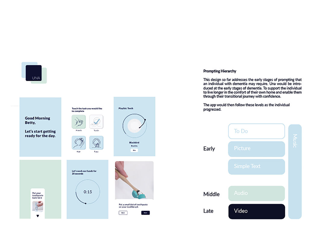 Currently, Una has been developed to address the early stages of dementia. Adaptations can be distressing for an individual, introducing them early, gives the person time to familiarise themselves.