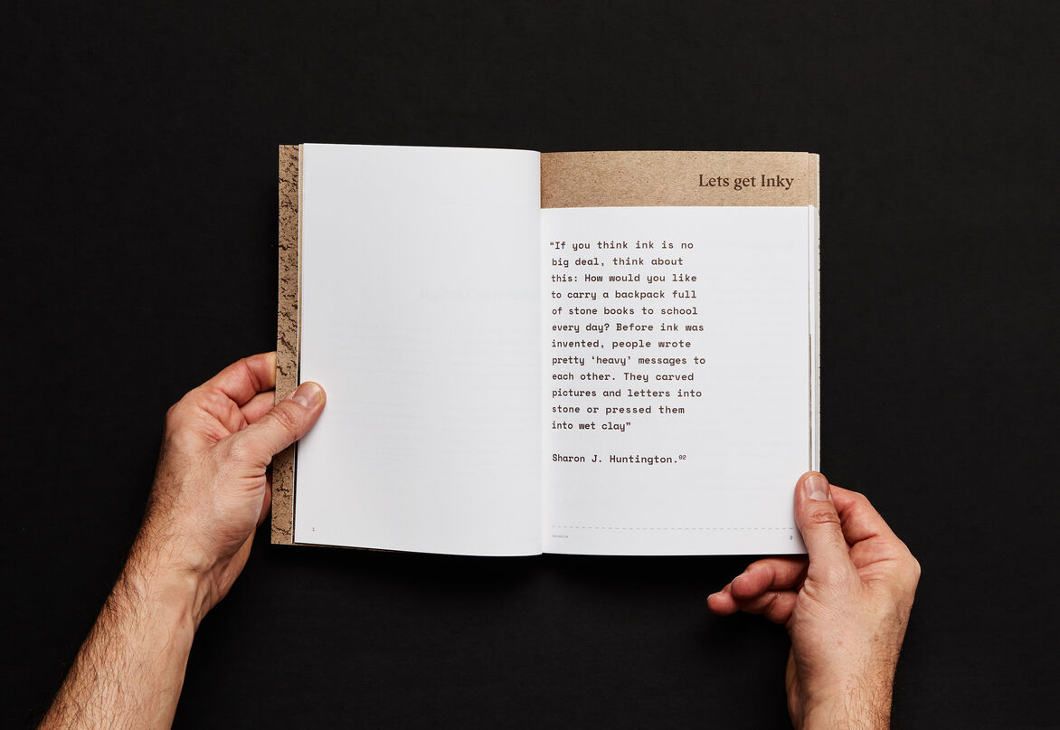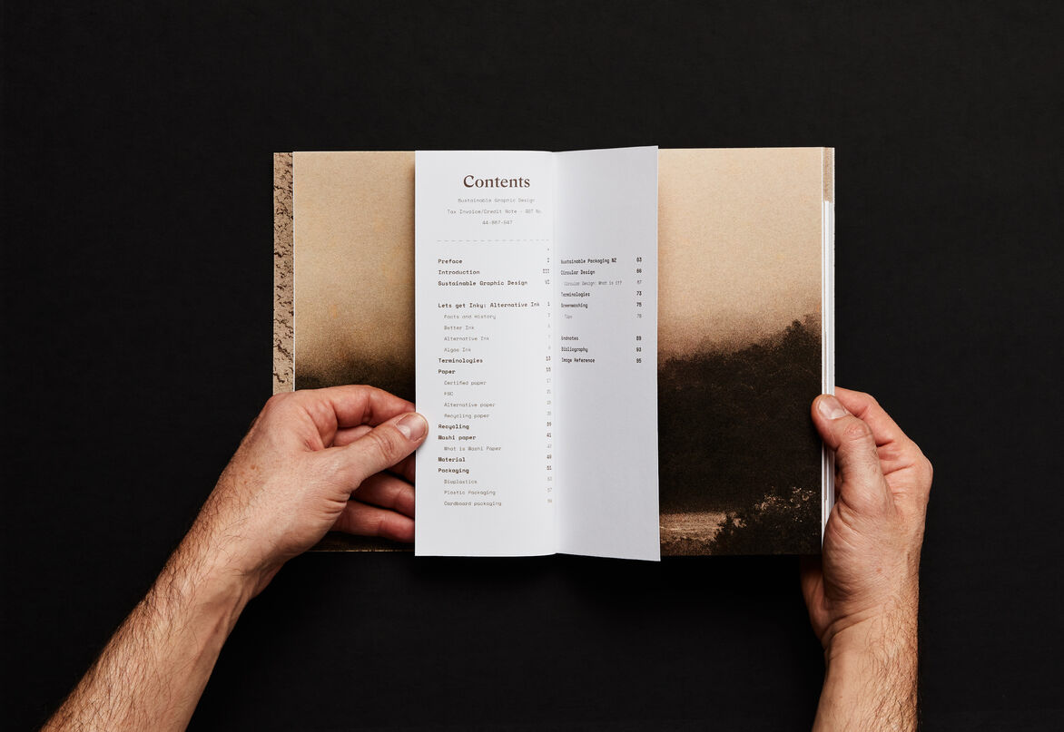 It might seem contradictory to create a printed book for this topic. However, I wanted to use ‘Versatile’ as an example of how we can create sustainable outputs. I used compostable ink, mixed FSC Certified paper and a small selection of recycled, handmade paper. Typefaces were chosen to use less ink, and I used environmentally friendly resources when available. The outcome is not 100% sustainable — the process of working towards that ideal is immeasurable — but the understanding I gained serves as a catalyst for producing more sustainable artifacts in the future.