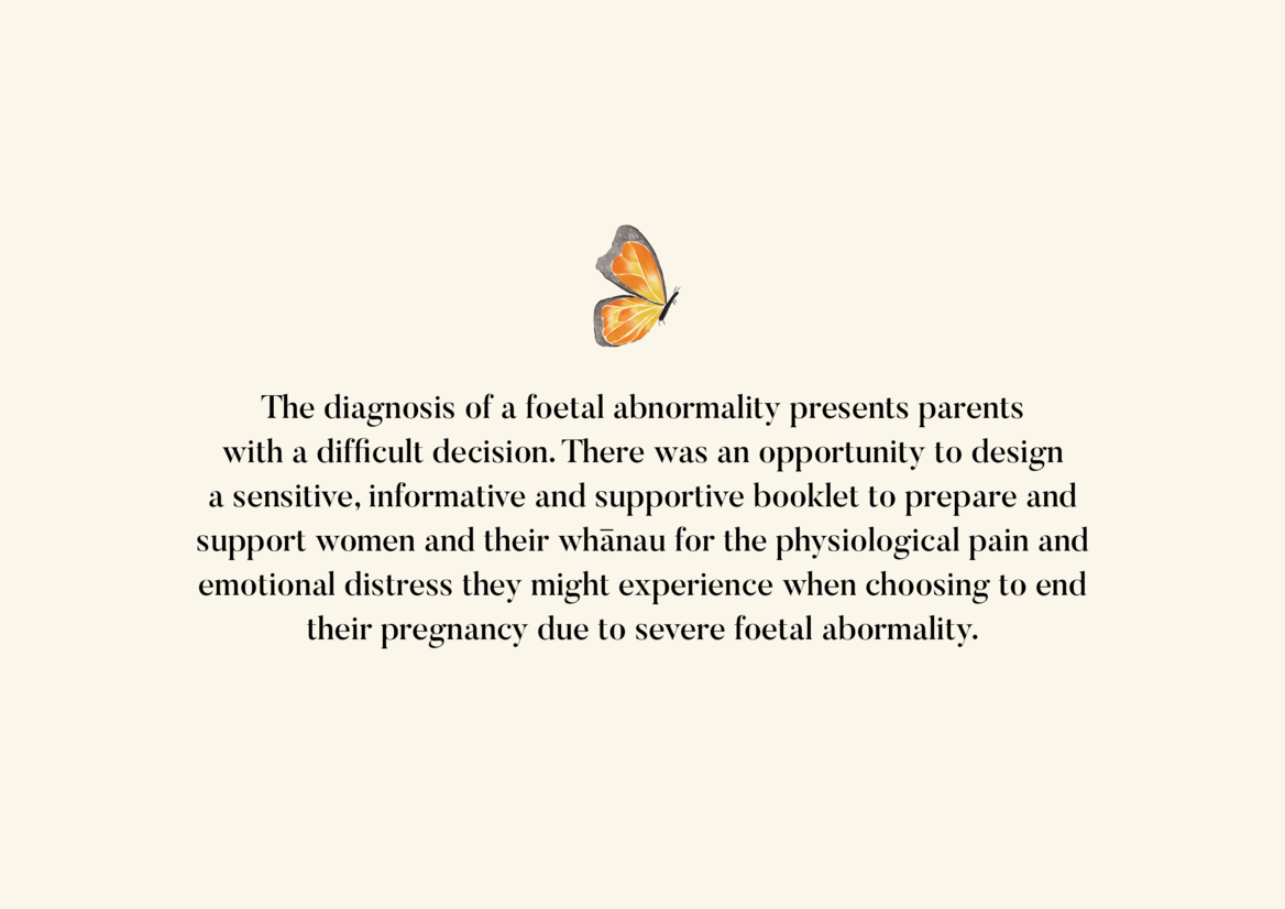 There was a meaningful opportunity to design more sensitive, supportive and informative resource specifically for women making this difficult decision. Women were previously given information around the termination of pregnancy – however, this information was focused heavily on a social termination of an unintended pregnancy. It did not acknowledge or consider the emotional needs of women and their whānau who have chosen to end their wanted pregnancy due to medical reasons or provide them with the appropriate support around this.