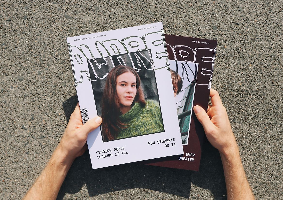 AWARE is a youth-led magazine that centres lived experience as a way to support and destigmatise mental health conversations in Aotearoa. Its first issue, Kōanga, responds to the rising rates of distress among rangatahi (young people), offering a design-led, student-made alternative to the standard approaches of helplines and online services. Rather than present mental health through statistics or advice, AWARE starts with storytelling. It opens a space where real student voices can speak with honesty, vulnerability, and strength—inviting others to feel seen, heard, and less alone.