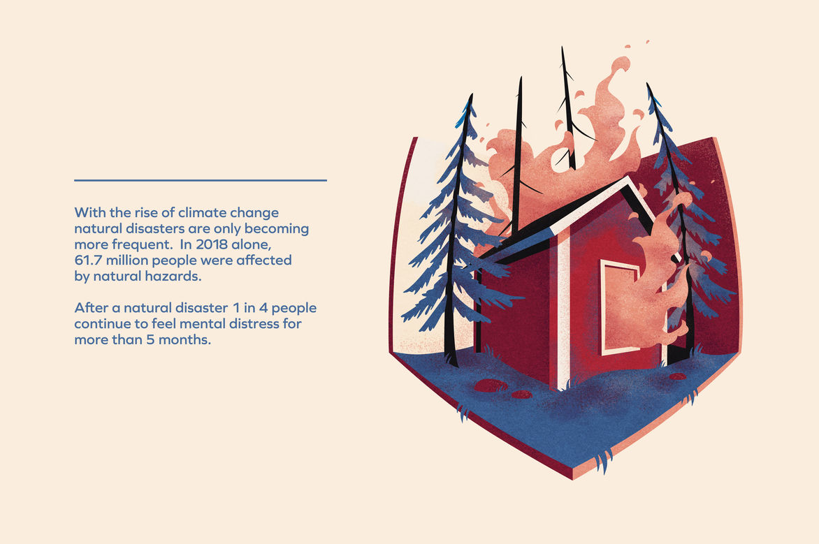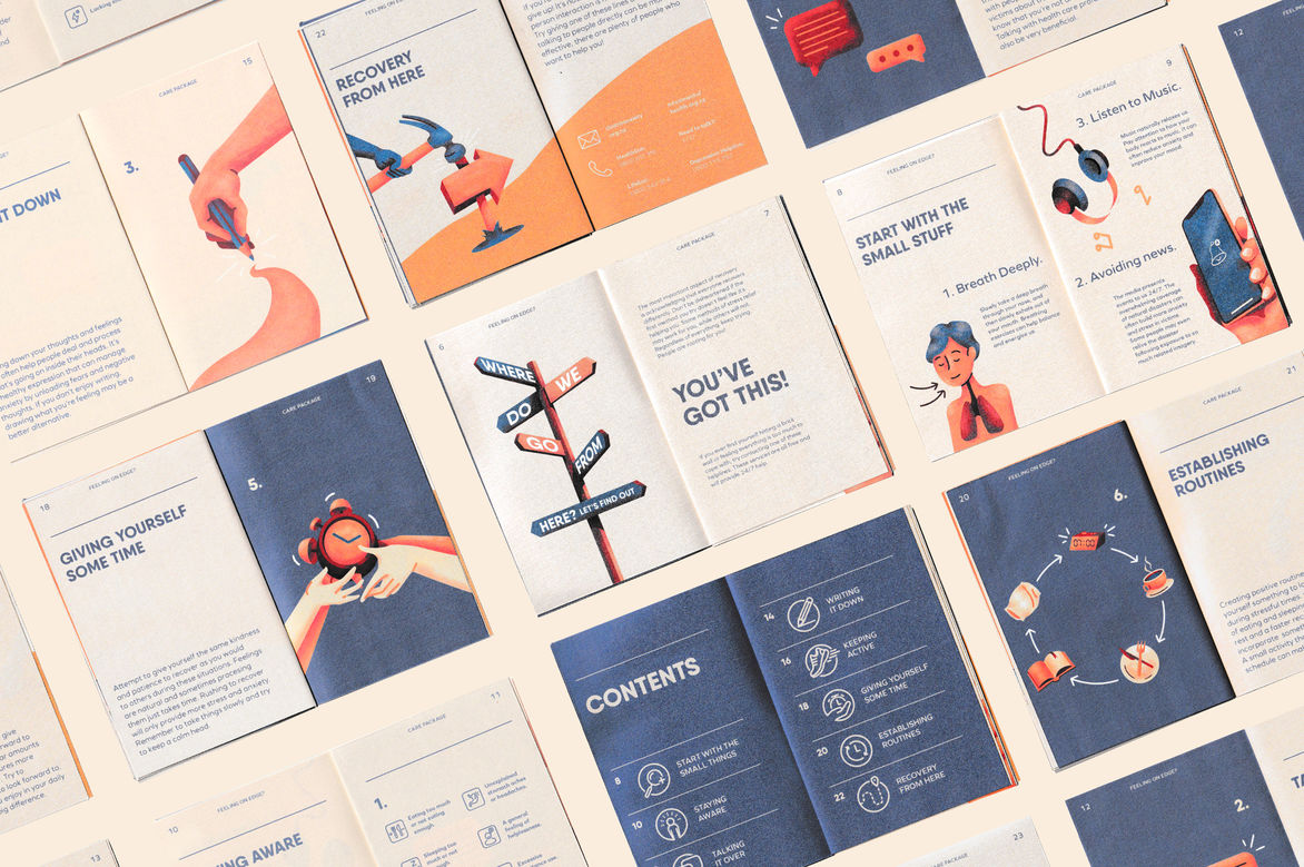 Late 2019 through to the beginning of 2020 Australia was struck with severe bushfires. 2,779 homes were destroyed, and 34 people were killed. I remember watching the broadcasts and thinking “I’d like to help.” After researching donation methods and disaster relief systems I found most natural disaster victims will experience mental distress, such as anxiety or stress. There is plenty of research on the subject, yet wellbeing resources following these traumatic events are uncommon, or are overloaded with unorganised information. My response is Care Package; a wellbeing resource kit for natural disaster victims that serves as a conceptual exploration into how communication design can help manage and facilitate mental health recovery following disasters.