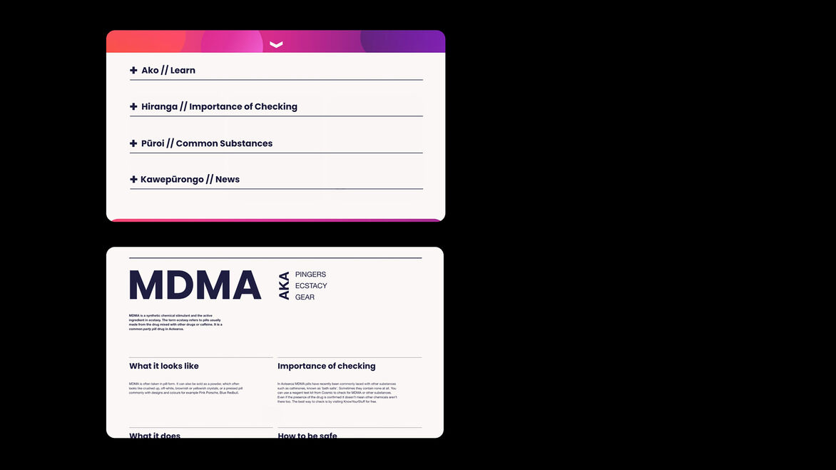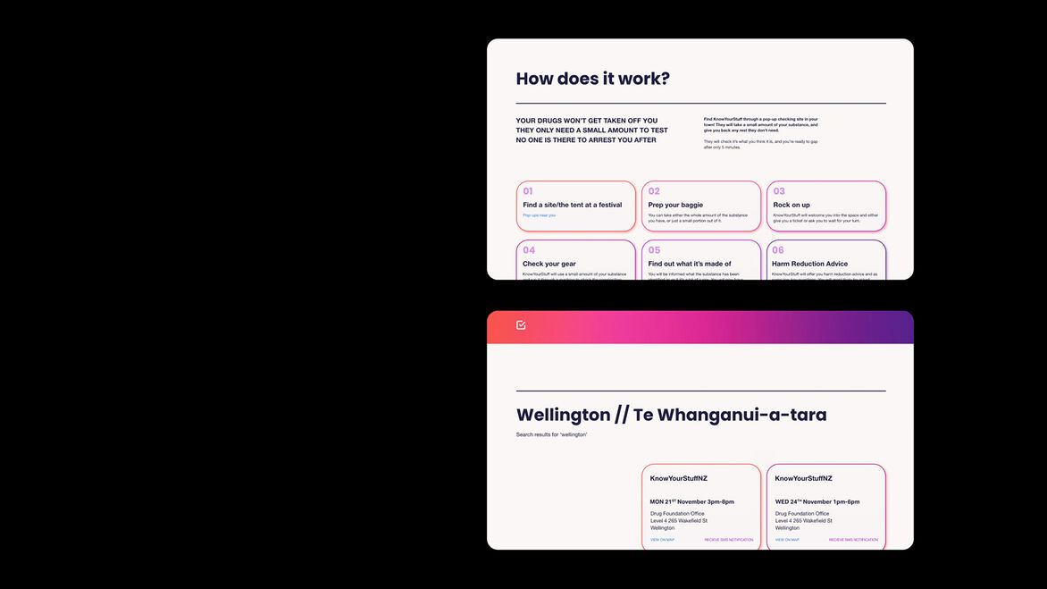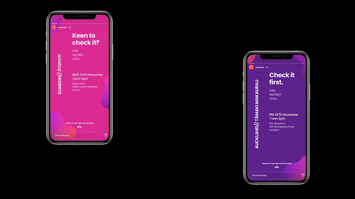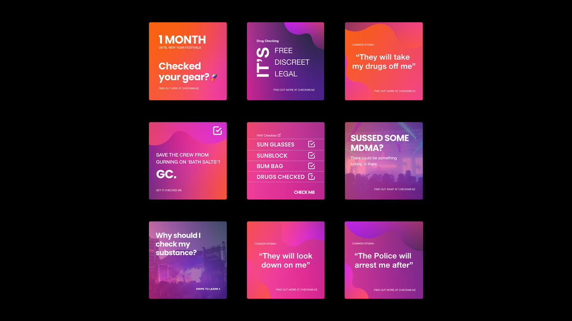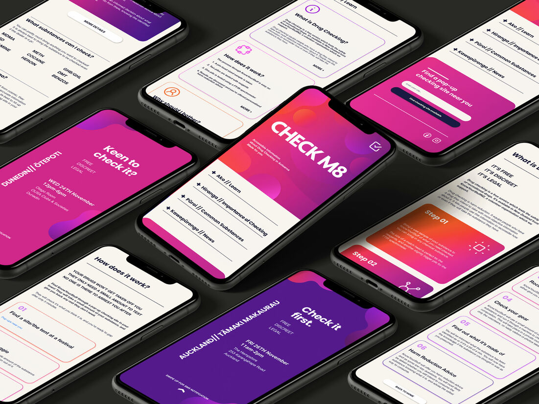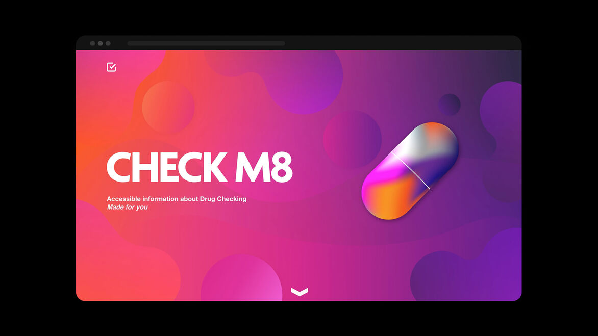Drug checking is free, legal and discreet, yet young adults have negative stigmas around the process and don't trust or utilise the service. That's where ‘Check M8’ comes in. It is a designed system and experience that builds trust and educates on the importance of drug checking to facilitate behavioural change. It is focused on breaking down stigmas and creating the ‘new normal’ of always checking drugs as a harm reduction method.