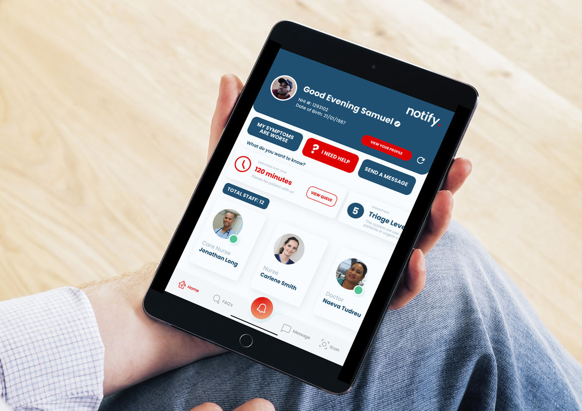 Notify is designed for patients that attend urgent care clinics – the third ill-defined space. Not the passive appointment-led general practitioners doctor office where you might wait for 20 minutes. But neither the intense high-stress environment of the emergency department. It’s the space between. Urgent care clinics provide non-appointment care and are generally open seven days a week, from 8am until at least 8pm and many offer after-hours care. These clinics play a vital role in supporting general practice services and keeping patients with mild to moderate illness and injury out of hospital Emergency Departments. In New Zealand urgent care, because of the fluctuations in patient numbers, the seriousness of their conditions, and pressures on resources, the expected triage times cannot always be met meaning patients often have a long time to wait.