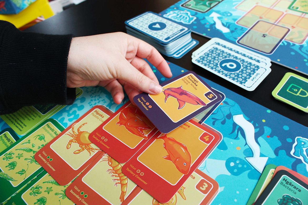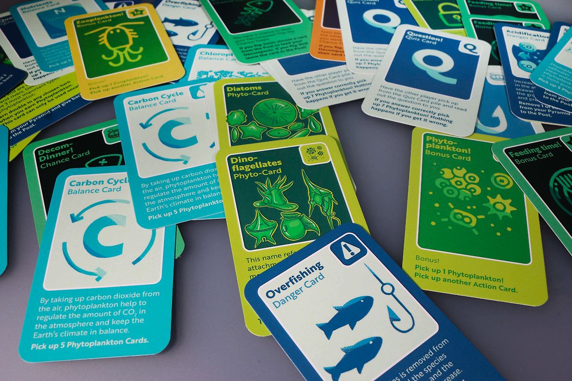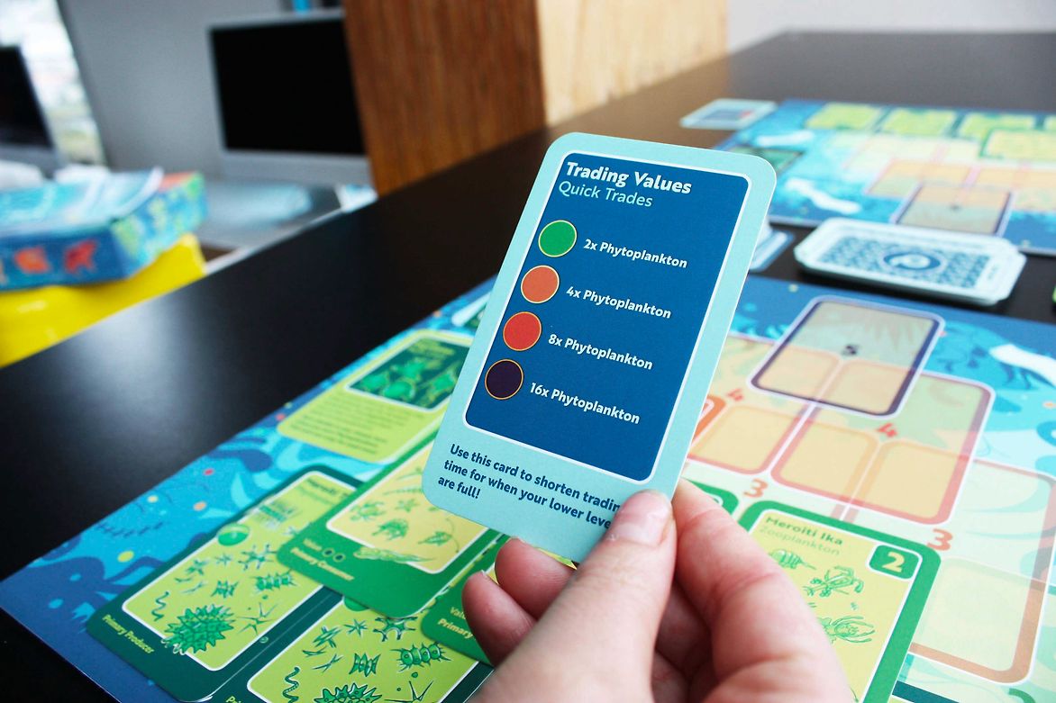 The gameplay reflects real-life conditions and the effects of those conditions on the food pyramid in nature from human activity, climate change and natural events. Players build up their pyramid by trading lower-level organisms for the next level up which embeds a sense of value in higher-level cards referring to the energy transfer between trophic levels.