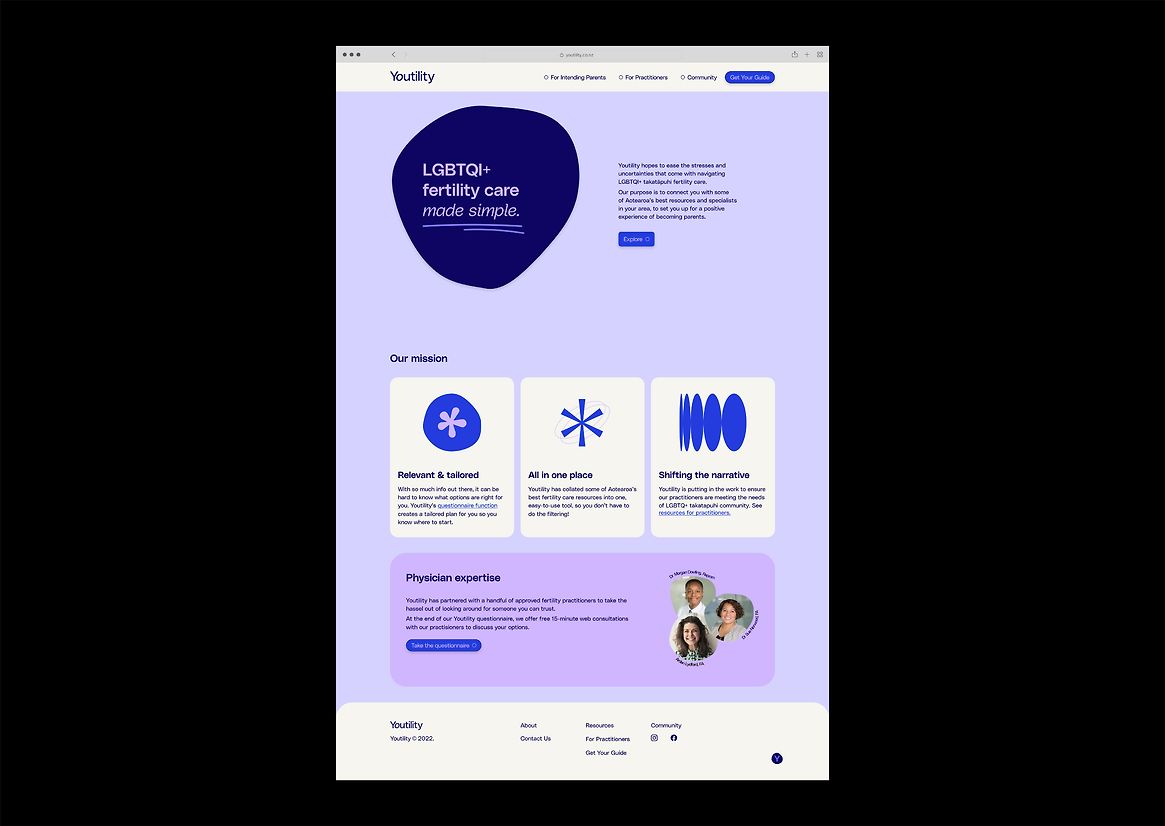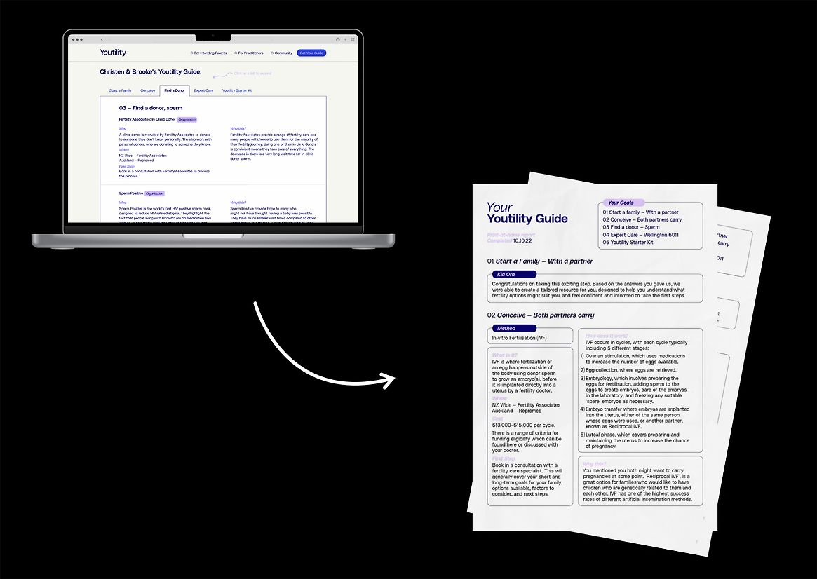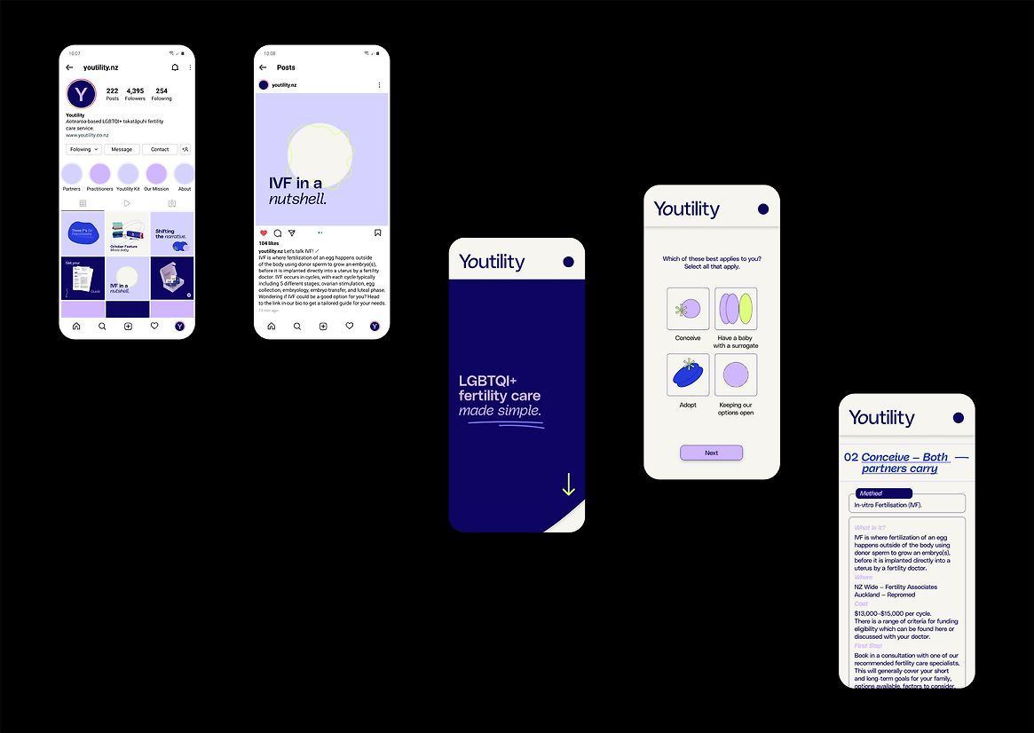 Youtility is an Aotearoa-based platform and community that aims to ease the uncertainties and barriers that come with navigating LGBTQI+ takatāpuhi fertility care, enabling rainbow people independence to explore options for becoming parents. Bridging the gap between internet deep-dives and healthcare professionals, Youtility sets up LGBTQI+ people for a positive start to their parenting journey, connecting them with culturally competent, affirming care and resources.
