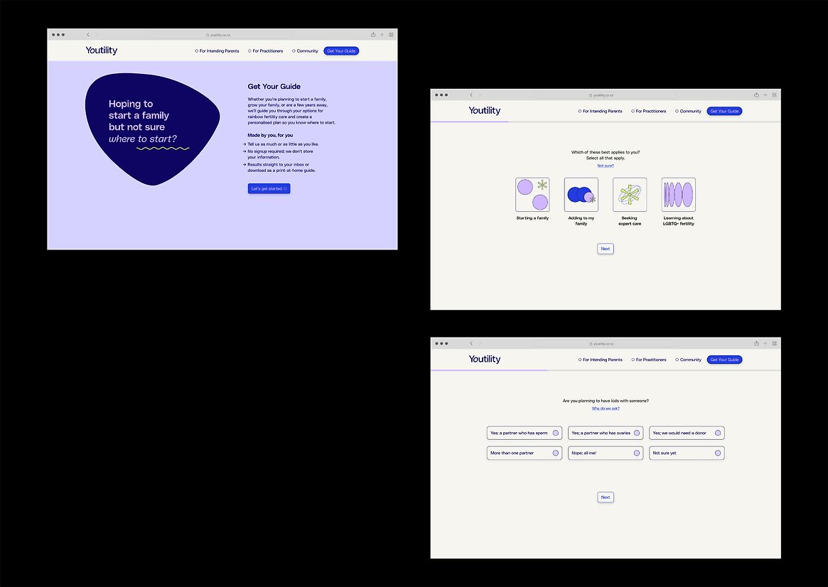 The research process uncovered many barriers and pain points in a space that is still relatively untouched. While this provided many design opportunities, it was important to not tackle too much. Instead of trying to solve the implications encountered, Youtility connects users to existing support systems.