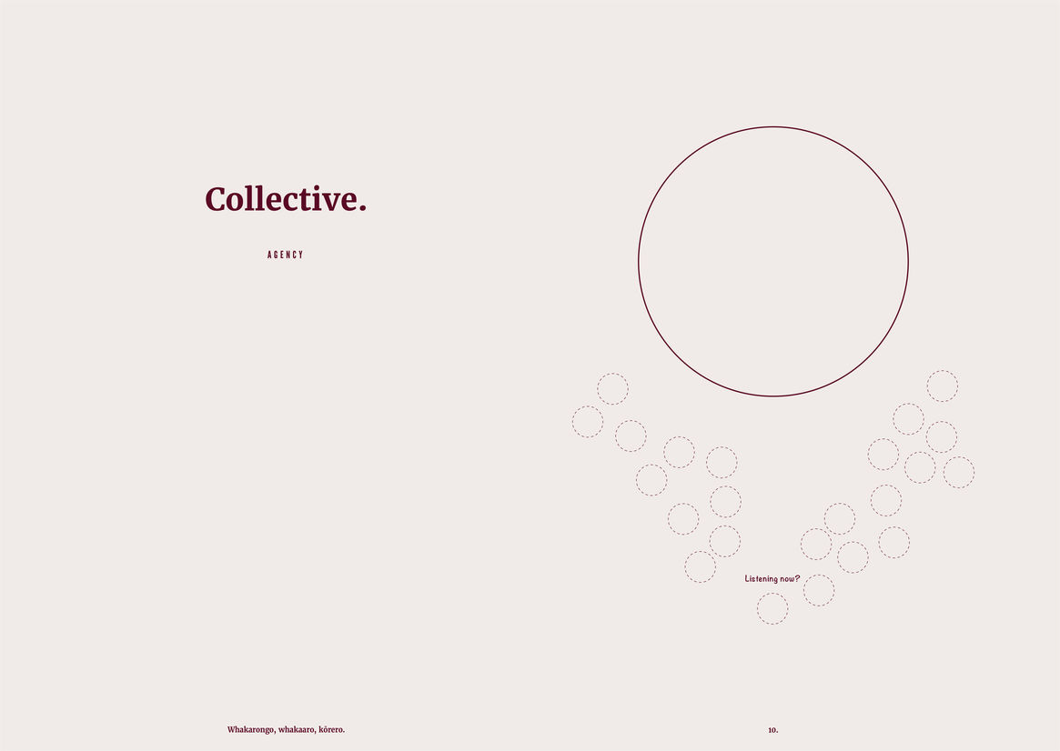 (10) The first intention of Whakarongo, whaakaro, kōrero was to support KWS, however, meaningful kōrero helps much more broadly because kōrero grows understanding of ourselves and each other, enabling and shifting agency to the collective.