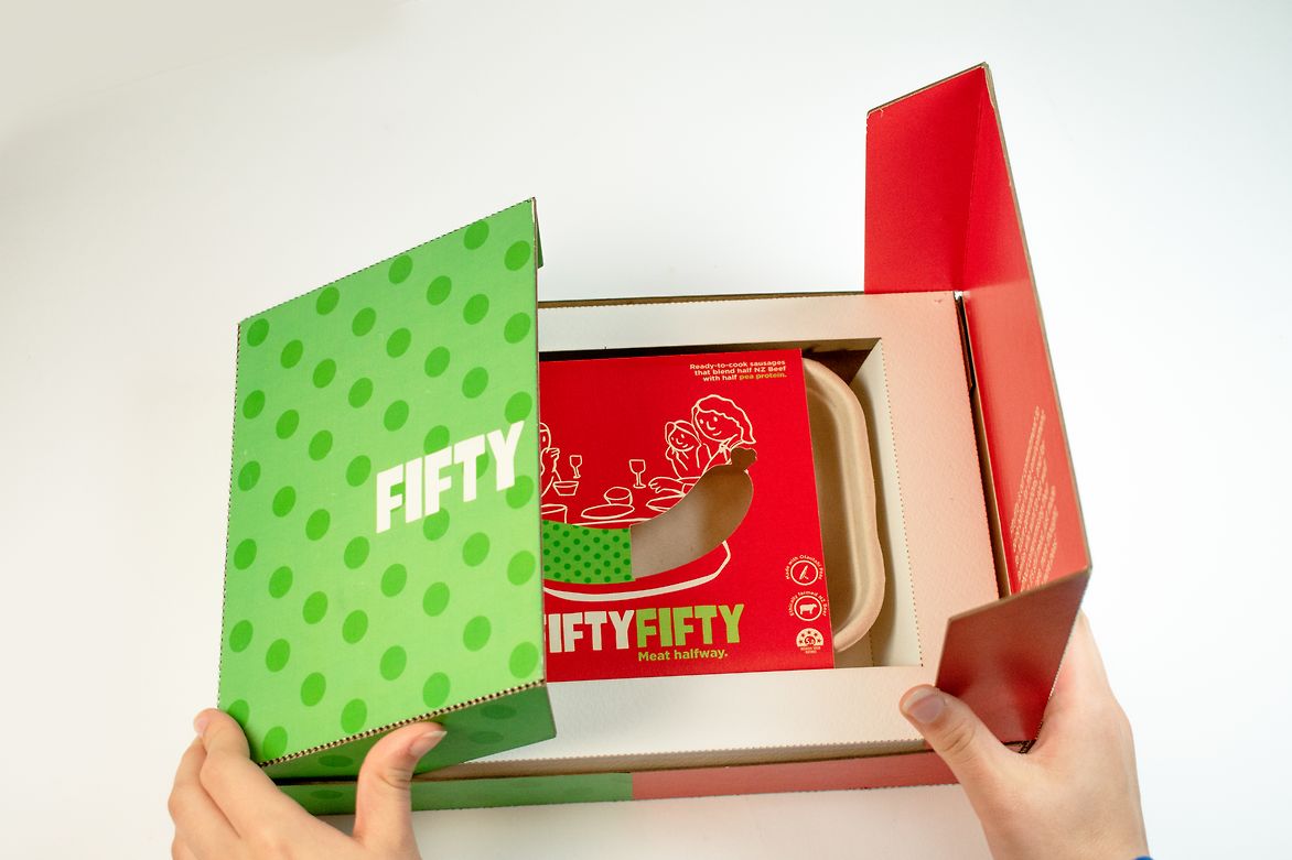 Founded by the fictional Wright Family Farms in ōtautahi, Fiftyfifty reimagines what sustainable meat can look like. Based in New Zealand’s pea-farming capital, the Wrights converted their crop-livestock farm to employ a more circular farming system that helps sustain the land for generations to come. To ensure real impact, Wright Family Farms partners with local Māori farmers and incorporates mātauranga Māori (Māori knowledge systems) into their farming practices. This collaboration helps protect and regenerate the whenua, guided by the principle of kaitiakitanga (guardianship of the land).