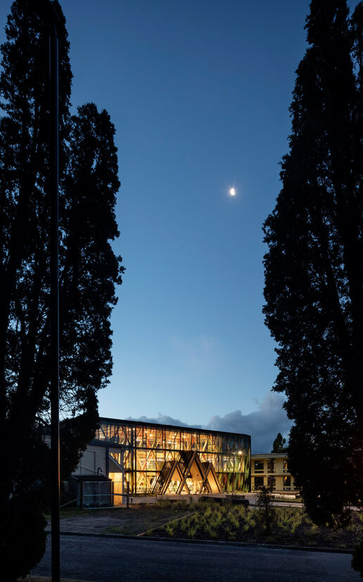 This project involves a reimagining of the Rotorua headquarters of Scion, a Crown Research Institute that specialises in technology development for the forestry industry. Aptly located on the edge of the redwood forest in Whakarewarewa Forest Park, the project brings the workforce, previously siloed in smaller buildings dotted around the campus, into a central innovation hub while creating a new campus arrival point to strengthen the public interface for Scion.
