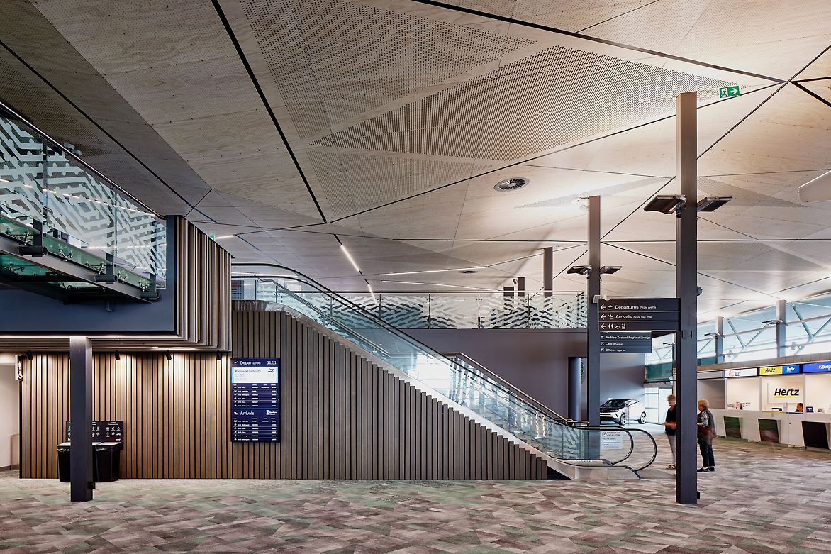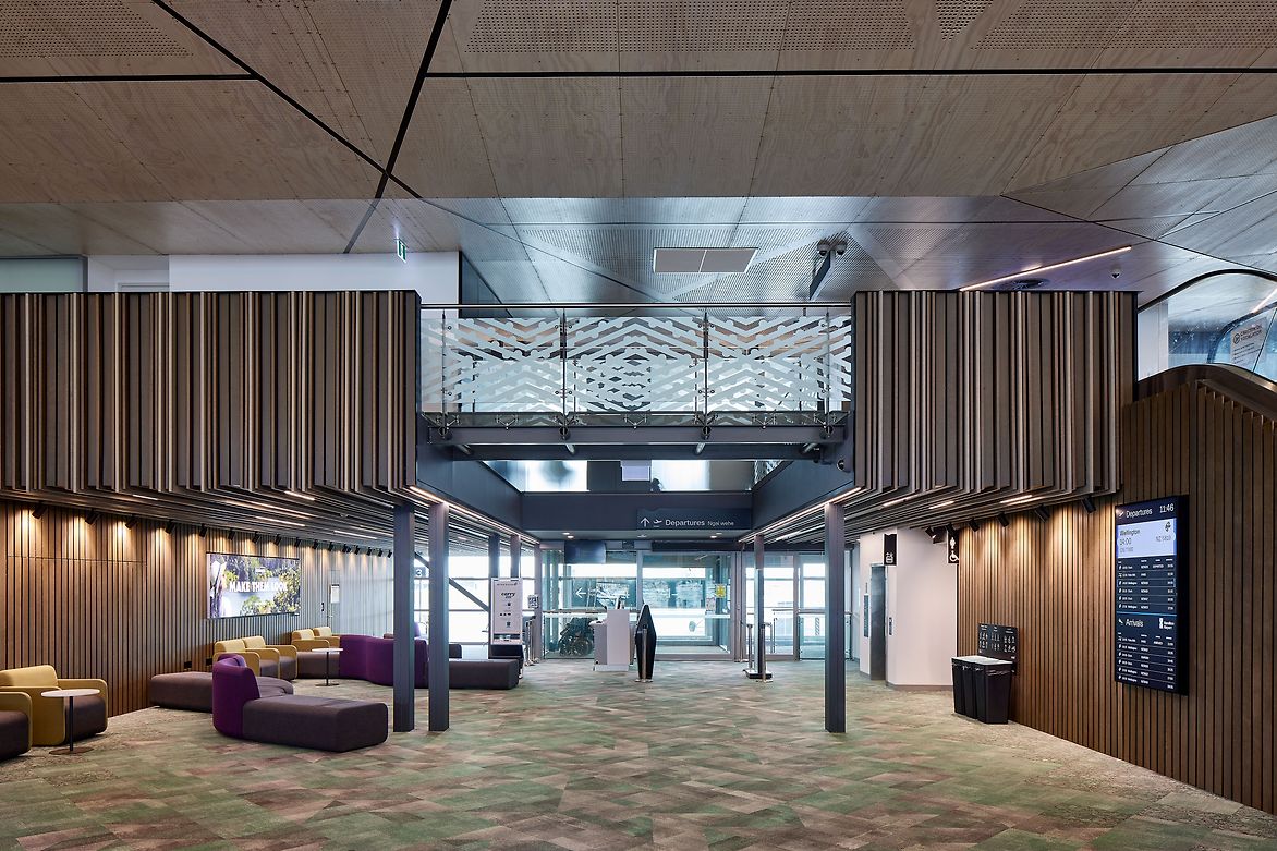 The airport is now a place we can be proud to call our own - a strong connection to the local community has been woven throughout the terminal design and the artwork in the terminal was created by artists with Waikato whakapapa so that home, looked like home. The use of colour is a key element within this; the texture, grains, patterns, and colour of the Cultural Narrative envelop you and stay with you after you have left the space.