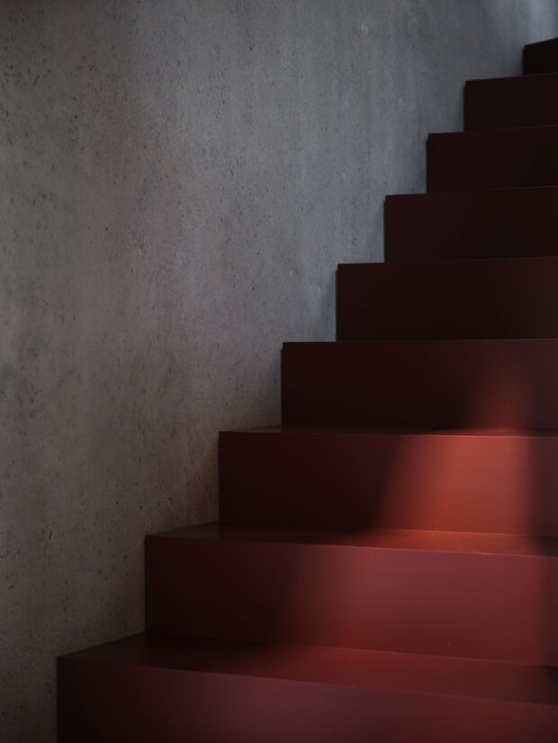 With the primary focus of the house being away from the sun, it provided a special opportunity to consider how best to let it back in. Exploring how light can be amplified, a 4.2-metre long 'slot' was inserted at the apex of the roof. Together with the ceiling space flaring out, this encouraged the sunlight to be directed deeper into the living spaces.