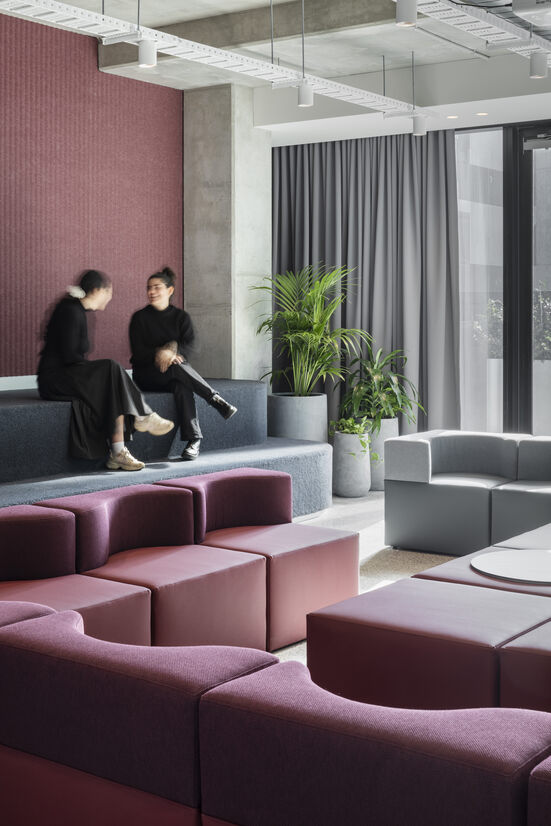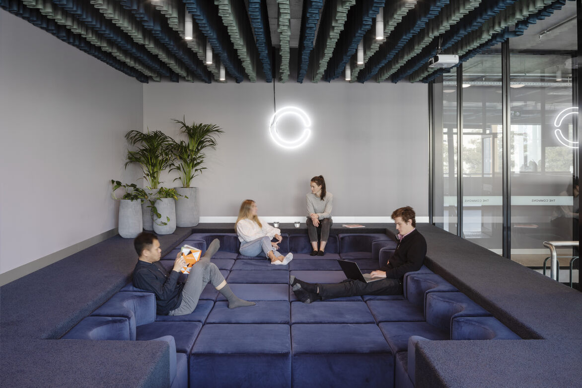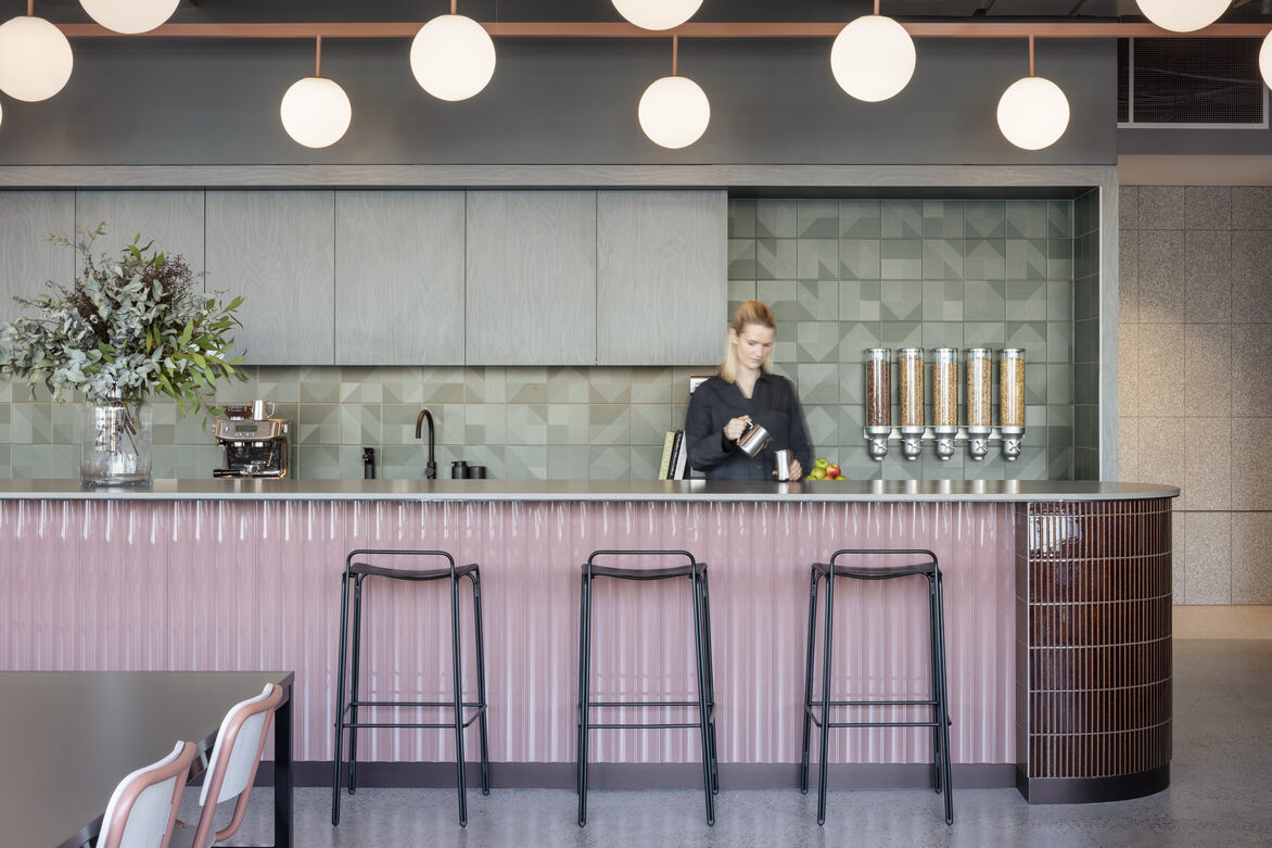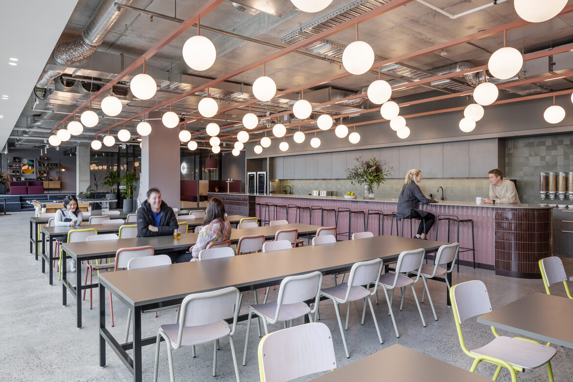 During initial client workshops, Foolscap developed a brief that posed the questions: ‘what will tomorrow’s workplace look like?’; and ‘what motivates us to come into the office when we can do it all from home?’. Their design response was consequently led by what ‘you can’t get at home’, with emphasis on collaborative spaces, specialist facilities and amenities that cater to communal and individual needs in a joyous yet highly multifunctional manner.