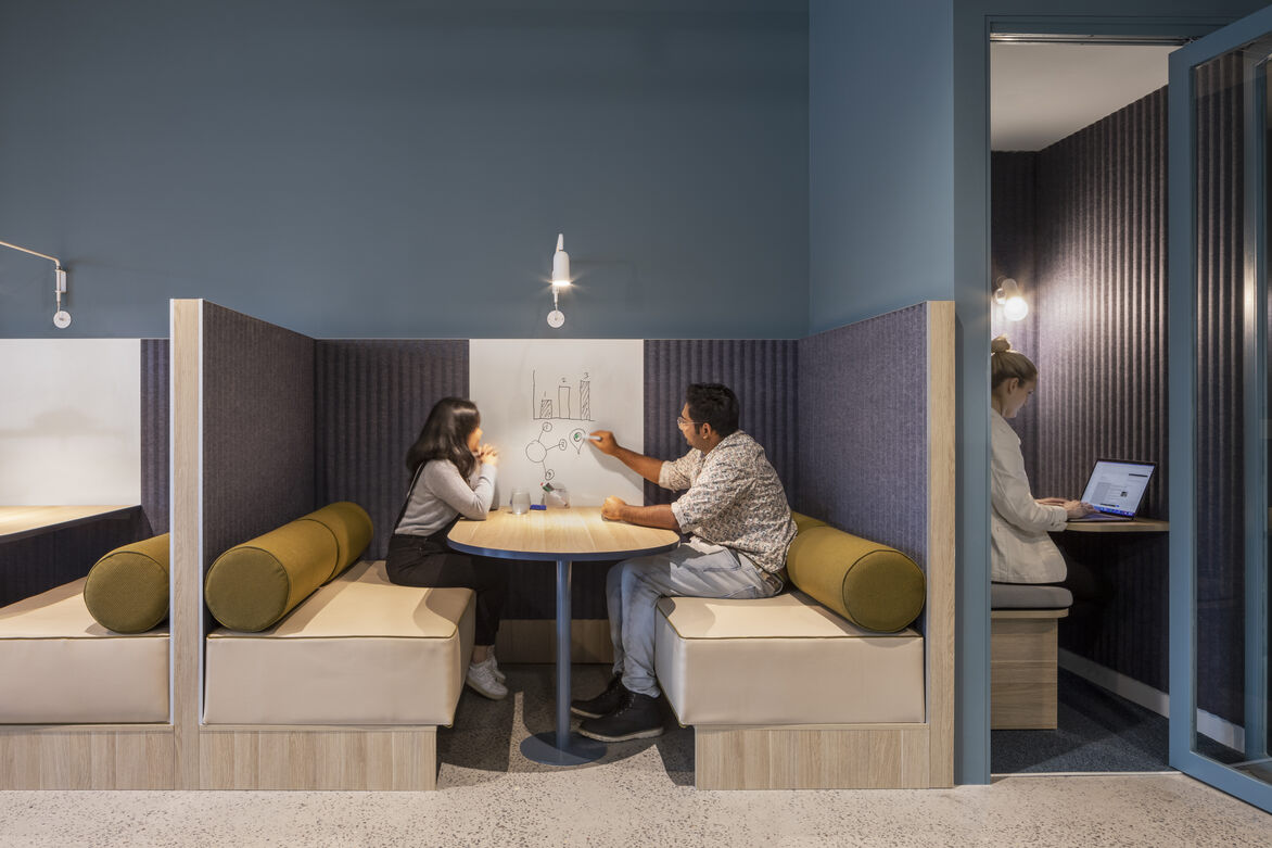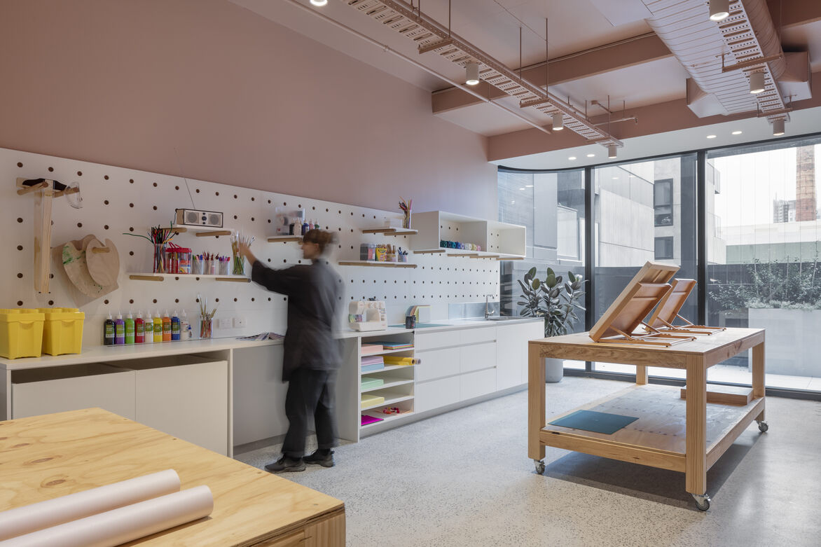 Facilities have been expanded to accommodate all, including a makerspace, multimedia podcast studio, and dedicated photography and parents' rooms. A softly-lit sensory room offers members time to disengage, meditate or practise yoga amongst tranquil white tones. Feeding a sense of ‘serious fun’ is the sunken conversation pit: a plush built-in lounge, and the ‘think tank': a reconfigurable space designed to facilitate connections and teamwork.