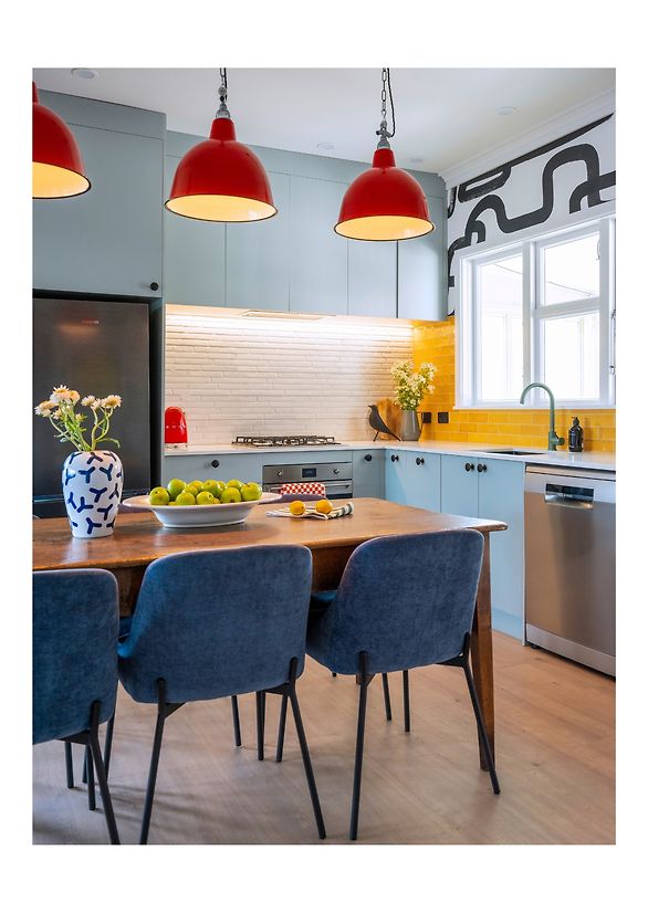I’ve always believed design should evoke emotion, and this project was about infusing the heart of the home with joy, surprise, and a playful sense of mischief. With a fearless palette of primary colours and a bold embrace of expressive finishes, I crafted a visual language that’s both daring and deliberately harmonious. This wasn’t about playing it safe , it was about unleashing a carefully choreographed riot of creativity.