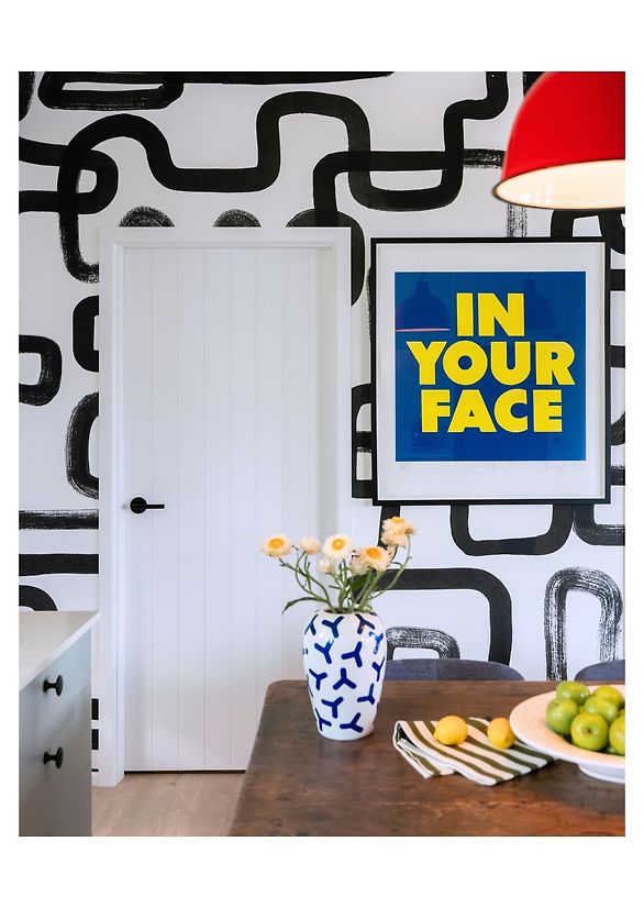 The concept for Spice Riot ignited from a single, audacious spark, a bold artwork titled In Your Face. Bursting with energy and attitude, it perfectly captured the spirit of the kitchen’s intended personality: colourful, confident, and unapologetically fun. It quickly became the design’s cornerstone, setting a rebellious, whimsical tone that rippled through every detail of the space.