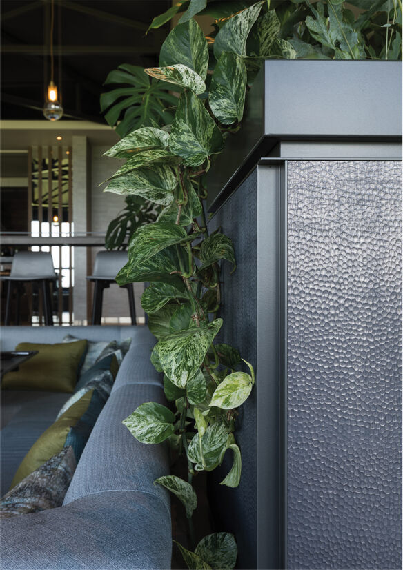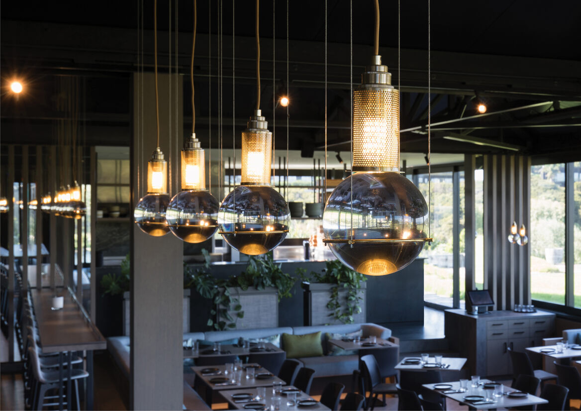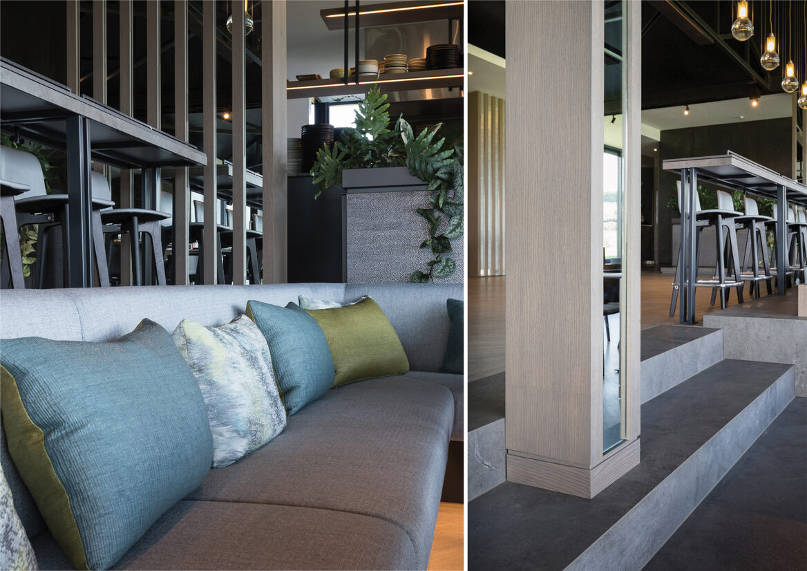 Synonymous with the wine industry and a naturally sustainable material, cork is used in various forms through the entire project. In the Verandah restaurant it is used to great effect where the huge expanse of flooring has been specifically selected for its integral cork backing, adding to the underfoot feeling of comfort, as well as enhancing the overall ambiance of the restaurant through its acoustic properties.
