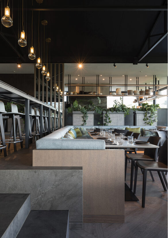 Catering to the diverse needs of varying events, the design allows for maximum flexibility with the introduction of varying seating types, while technical fabrics such as synthetic raffia offer high-end design without compromise on functional requirements in a high traffic, demanding venue.