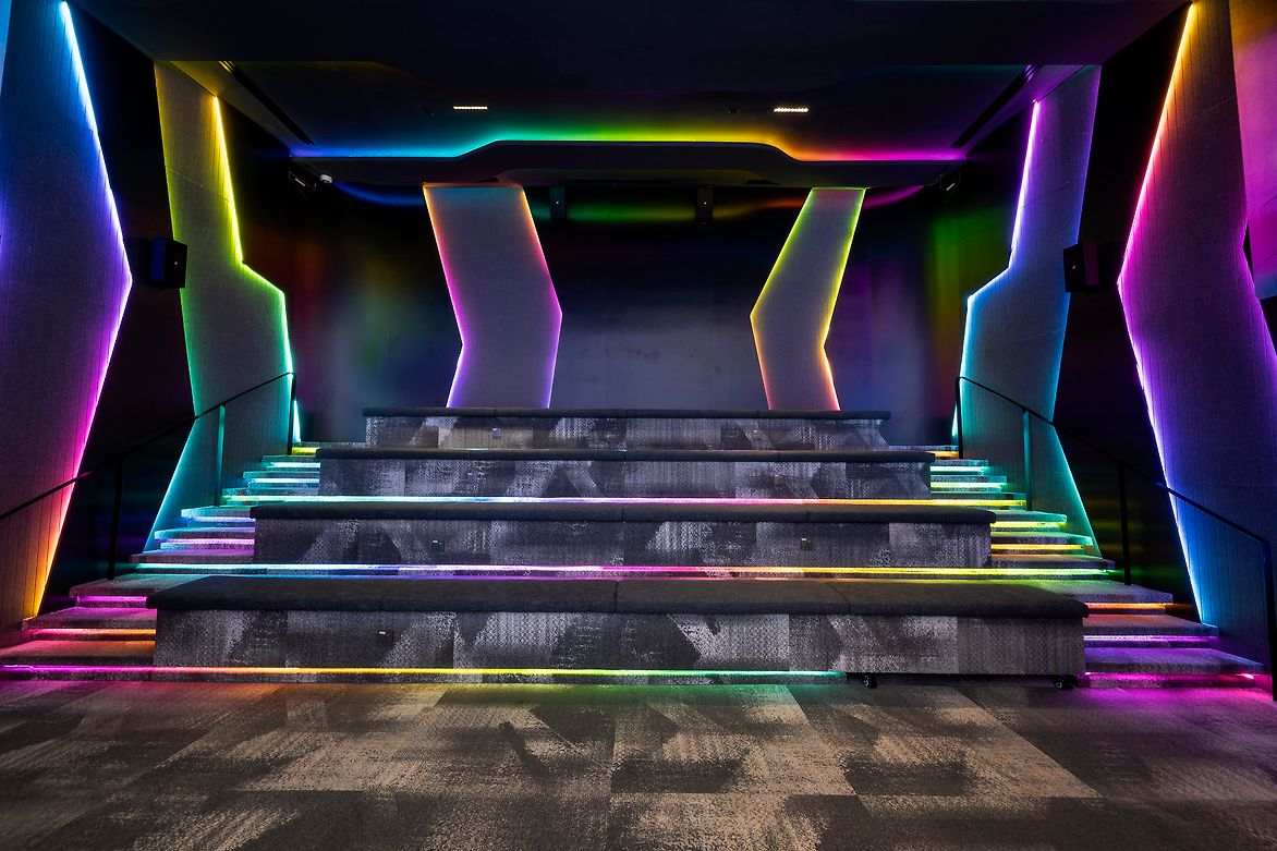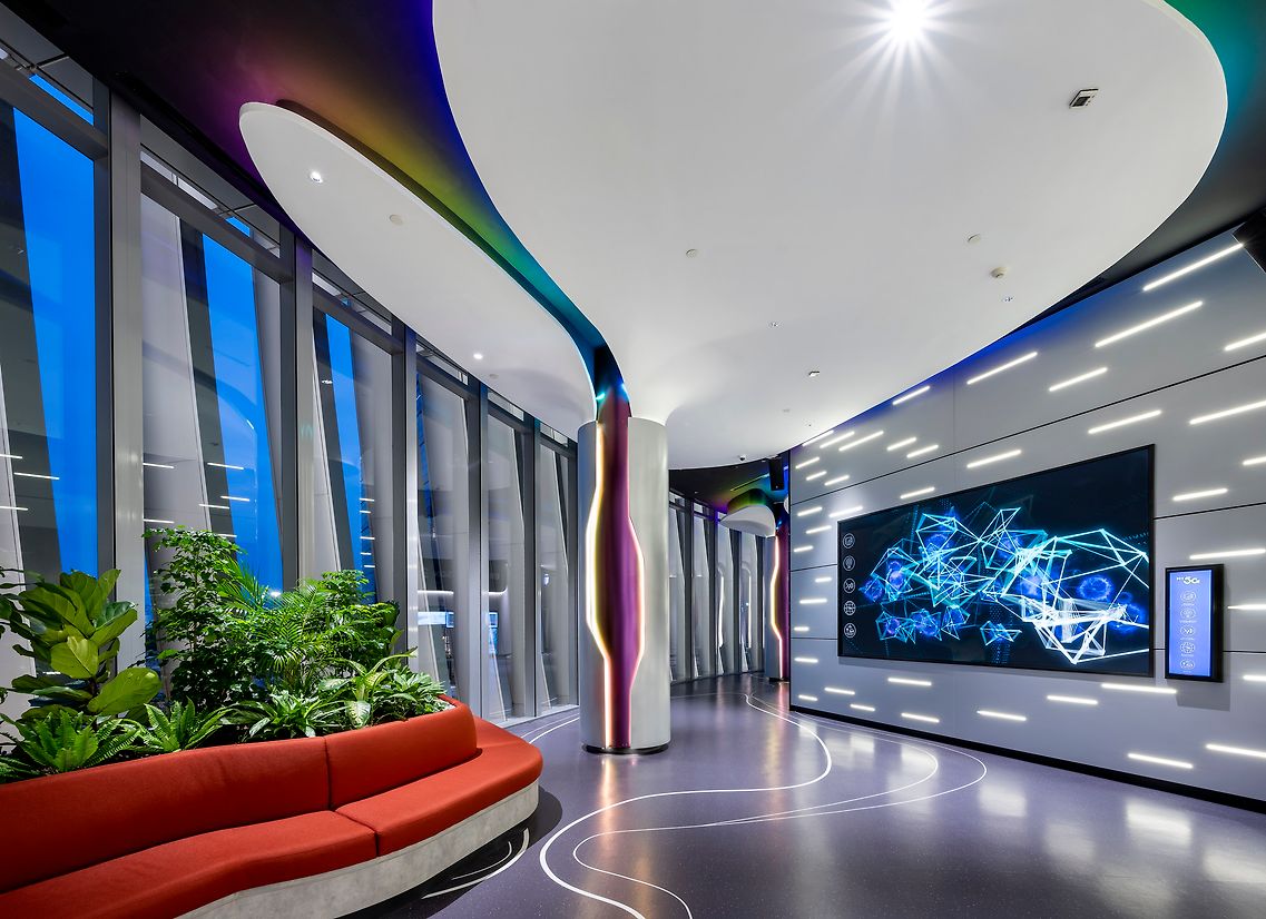 Our design strategy focuses on deep empathy and clear communication. Through engaging narratives and real-life scenarios, we designed an immersive 1,000-square-meter near-future world, explored in a 60 to 90-minute visitor journey. Inspired by Malaysia’s hibiscus flower, our design blends techno-organic motifs with digital installations.