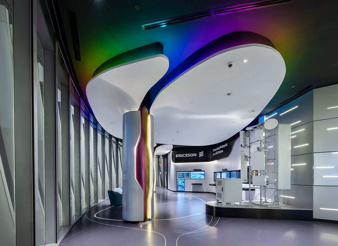 Visitors begin with "A Day in a 5G Life," a film depicting a modern Malaysian family navigating future technologies. Interactive exhibits follow, illustrating the evolution from car phones to smart devices and exploring the impact of the Internet of Things. A Smart City simulation demonstrates 5G’s role in urban environments, using movable transparent touchscreens and projections to engage visitors with real scenarios.
