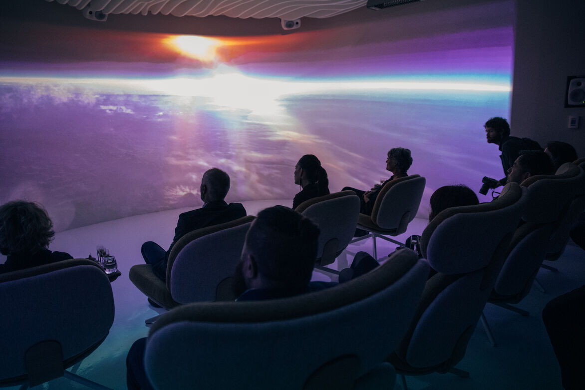 The space was designed to emulate the purity of the product with all white textures which dramatically transform through mapped projection and surround sound.