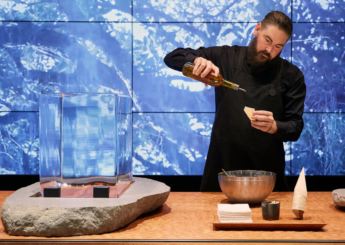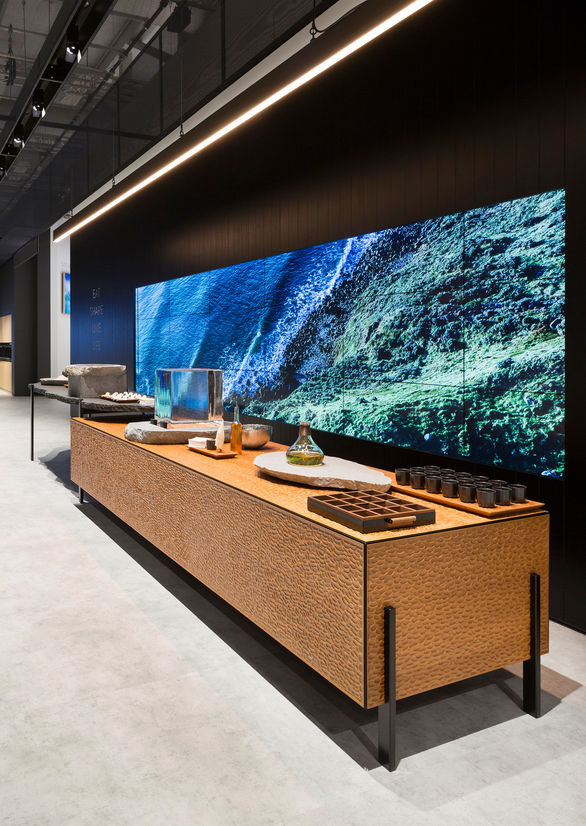 This sophisticated, polished and beautifully detailed display is a great showcase of New Zealand ingenuity and design excellence. Contrasting fine detailing with the rough unfinished edges of basalt celebrated New Zealand in a refined manner all while remaining completely relocatable to future exhibitions.