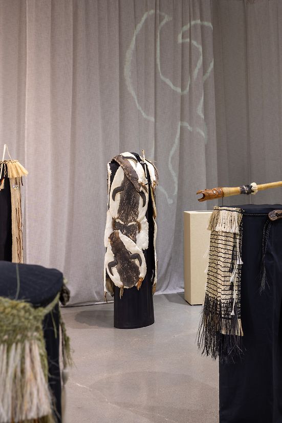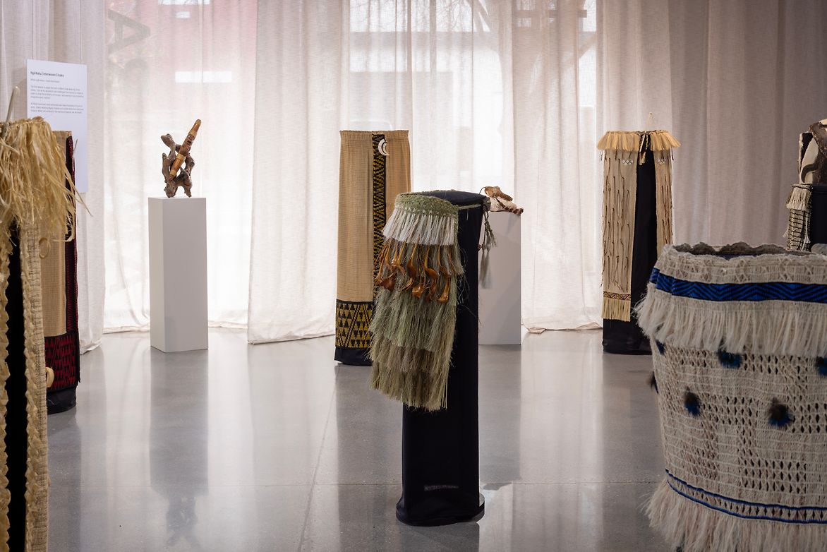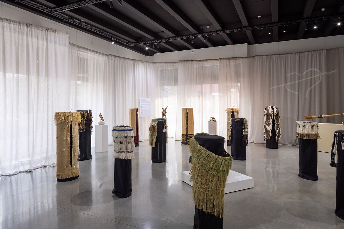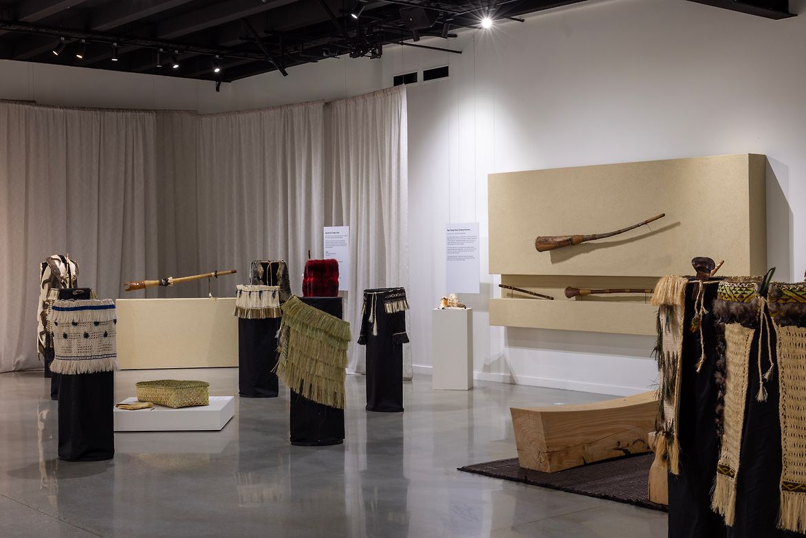 Te Atamira engaged our studio to design the exhibition. The brief was to show the kākahu and taonga puoru as living objects, for a relationship to be established between them, for a space to be included to observe the practice of weaving acknowledging the relationship of master weaver and student. The gallery was to shift outside its traditional white cube space and provide an immersive experience for the visitor.
