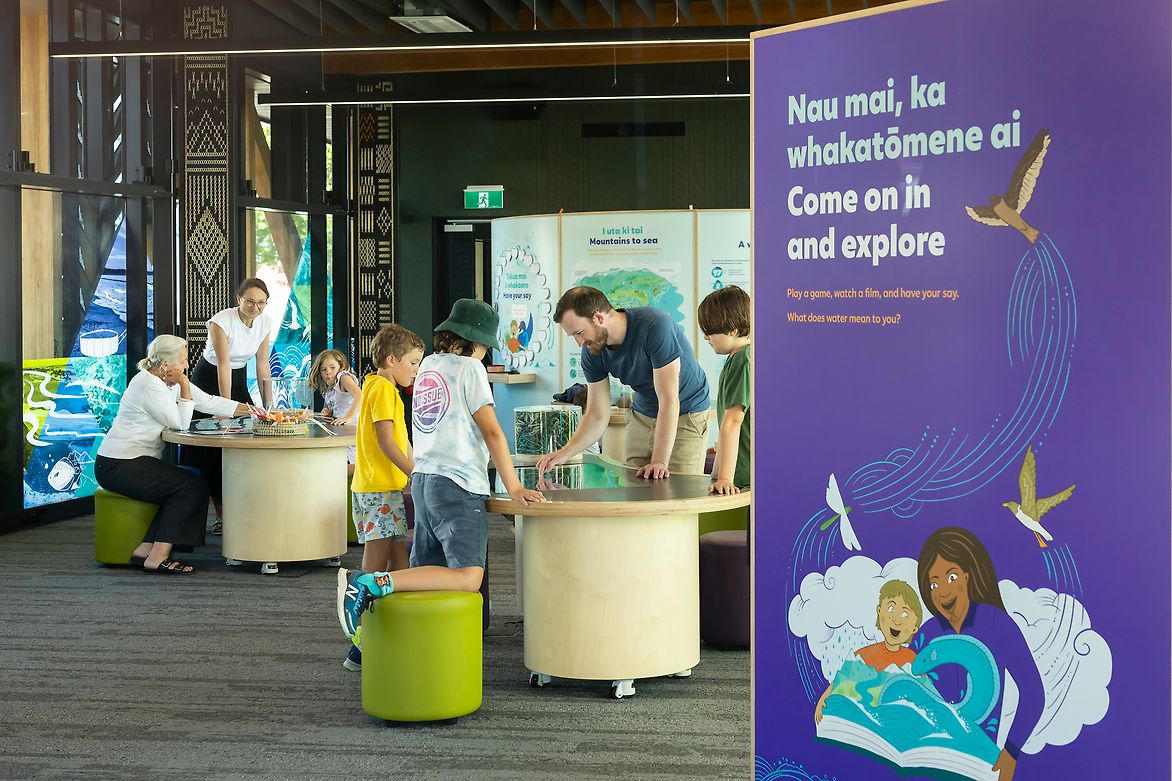 Here visitors can play games, watch films, have a say or snuggle up with a book. Discover the atua of Heretaunga through carved and woven arts and large-scale graphics. The space can be reconfigured from exhibition to classroom or venue for hire creating a vibrant hub for everything water.