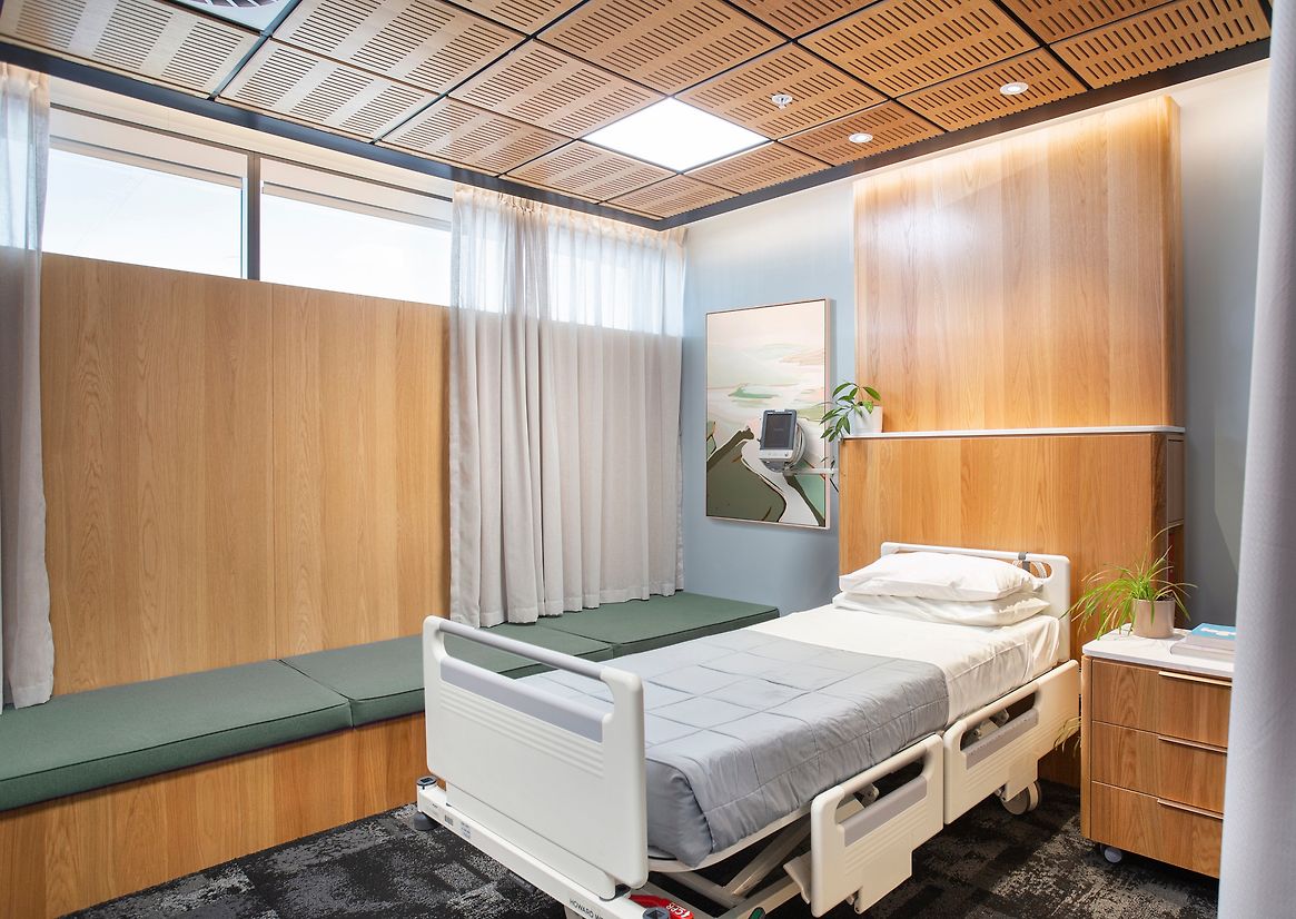 Drawing inspiration more from wellness spaces rather than traditional hospital settings, the design for Anglesea Hospital includes the creature comforts of home and the luxuries of a hotel stay. The hospital also features curved forms and radiused corners to soften the environment, putting patients at ease and improving circulation around the premises.