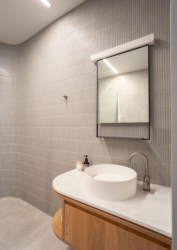 The new patient suites feature bespoke oak furniture and wall linings which create warmth and calm, while natural toned art and fabric finishes promote relaxation, trust and cleanliness. Hygienic antimicrobial fabric is used for the patient lounge seating as well as the bedroom bench seat which doubles as a bed for a patient’s support person to stay. The suite bathrooms were designed for accessibility and are extensively tiled with both mosaic and anti-slip tiles, merging safety with a high-end feel. Solid acrylic surfaces are used throughout the facility to aid cleaning.