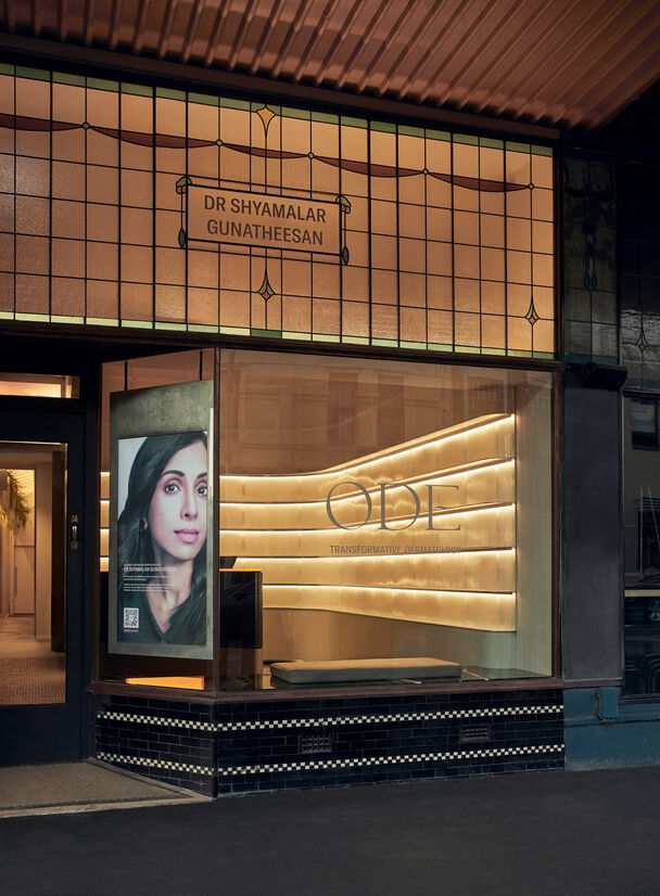 ODE Dermatology, designed by Foolscap Studio, fuses wellness with hospitality service and hotel-inspired luxury to give Melbourne’s premium Gertrude Street a unique dermatology offering. Housed within a heritage shopfront, a sumptuous interior fit-out and technology overhaul reflects the client’s dual medical and aesthetic philosophy: that holistic skincare should be an ‘ode to one’s self’.