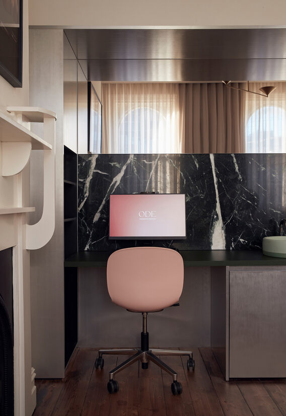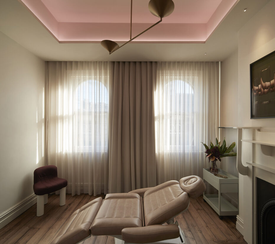For the treatment and consultation rooms, a technology overhaul was undertaken to make the site game-ready for ODE’s cutting-edge clinical capabilities, without compromising on aesthetics. Upstairs, period features are highlighted and juxtaposed against bespoke joinery pieces, including an O-shaped mirror in the dramatic powder room – an ode to the brand itself.